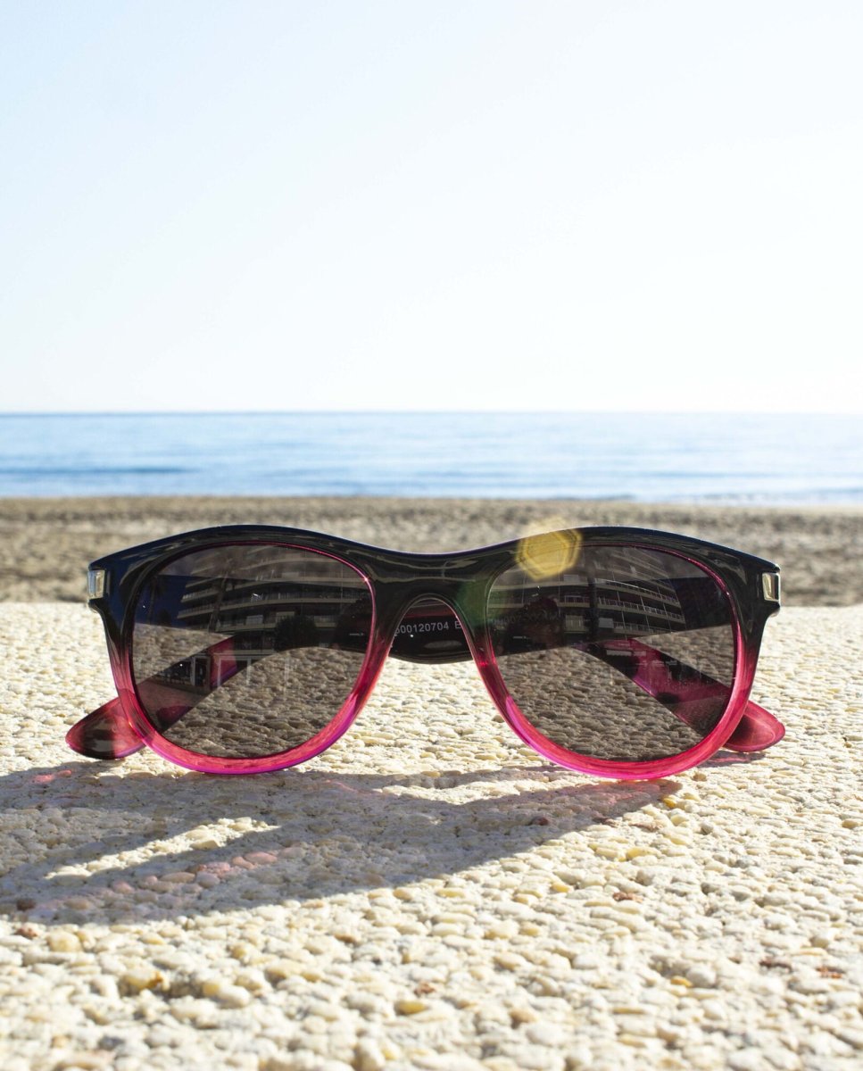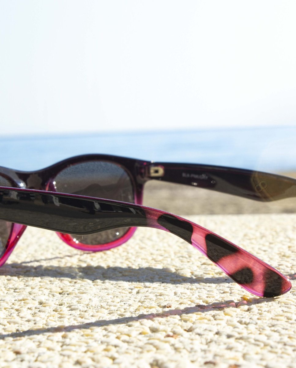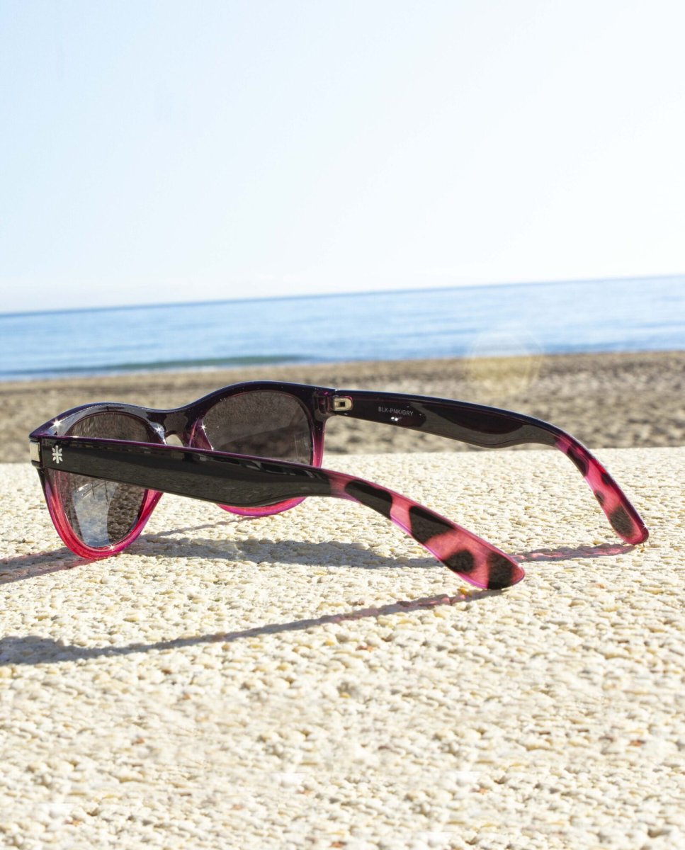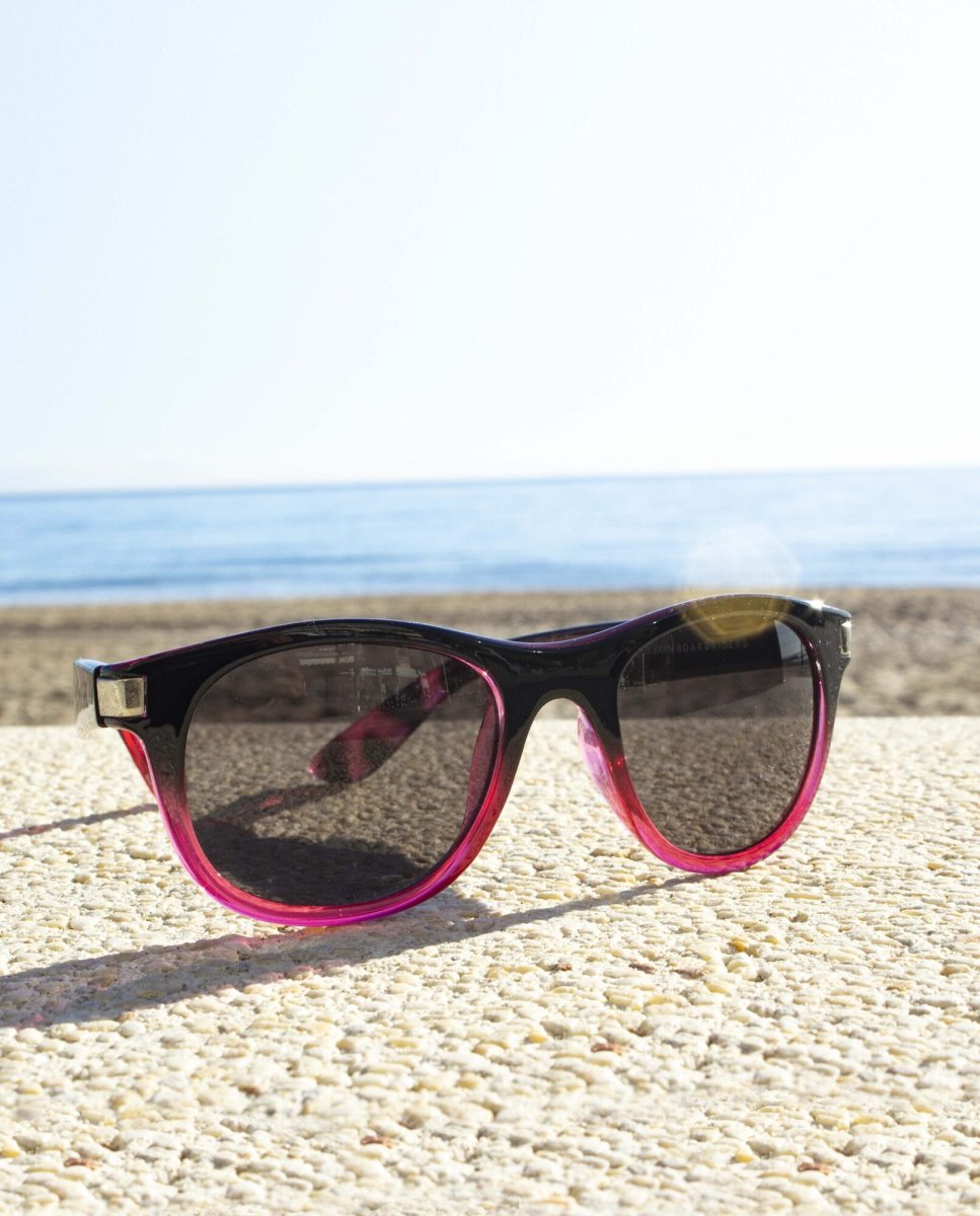Gafas de sol Boardriders en color negro degradado a rosa con detalle de carey en las patillas.