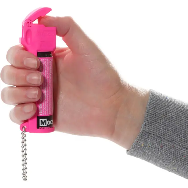 El espray de pimienta personal Mace ofrece una potente fórmula de oleorresina de capsicum (OC) al 10 % con tinte UV en un bote de 18 gramos, que rocía hasta 3,6 metros de distancia con 10 a 20 ráfagas. Este espray no letal causa ardor intenso, ceguera temporal y tos, incapacitando a las personas amenazadas hasta por 45 minutos sin causar daño permanente. El tinte UV marca a los agresores para su posterior identificación por parte de las autoridades.