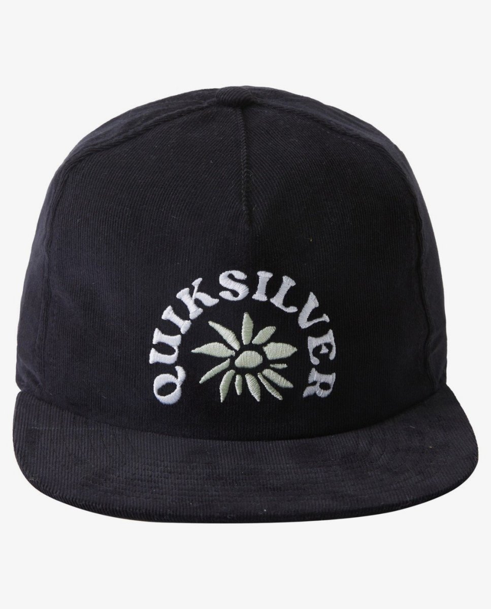 Gorra Quiksilver Grass Shot, confeccionada con tejido de pana en 5 paneles y una pieza, ajuste trasero por presión, visera semi plana, bordado de la marca en la parte frontal, unisex, ideal para los amantes de los diseños clásicos.