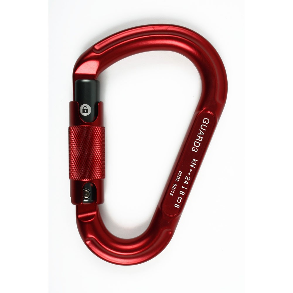 Mosquetón tipo pera HMS con cierre automatico de 3 pasos, su forma garantiza gran superficie, idonea para aplicaciones especificas de escalada y rescate. Indicador visual que muestra cuando el mosquetón está cerrado correctamente. Cierre tipo guitarra (key lock)