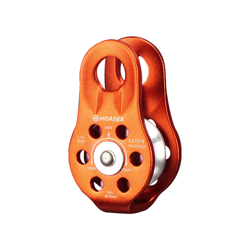 Polea pequeña sencilla de rodamientos. Roldana fabricada en aluminio, apta para ser usada con cuerdas de diámetros menoro igual a 13 mm.