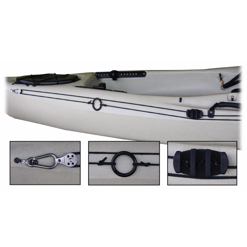Este kit de instalación para ancla le permite posicionar el kayak según lo necesite para ajustar con la corriente o viento. Sólo use el sistema de poleas y el mecanismo de zig-zag para asegurar la posición. Así logrará colocar el kayak en el ángulo que desee y estará en mejor posición para pescar con comodidad.