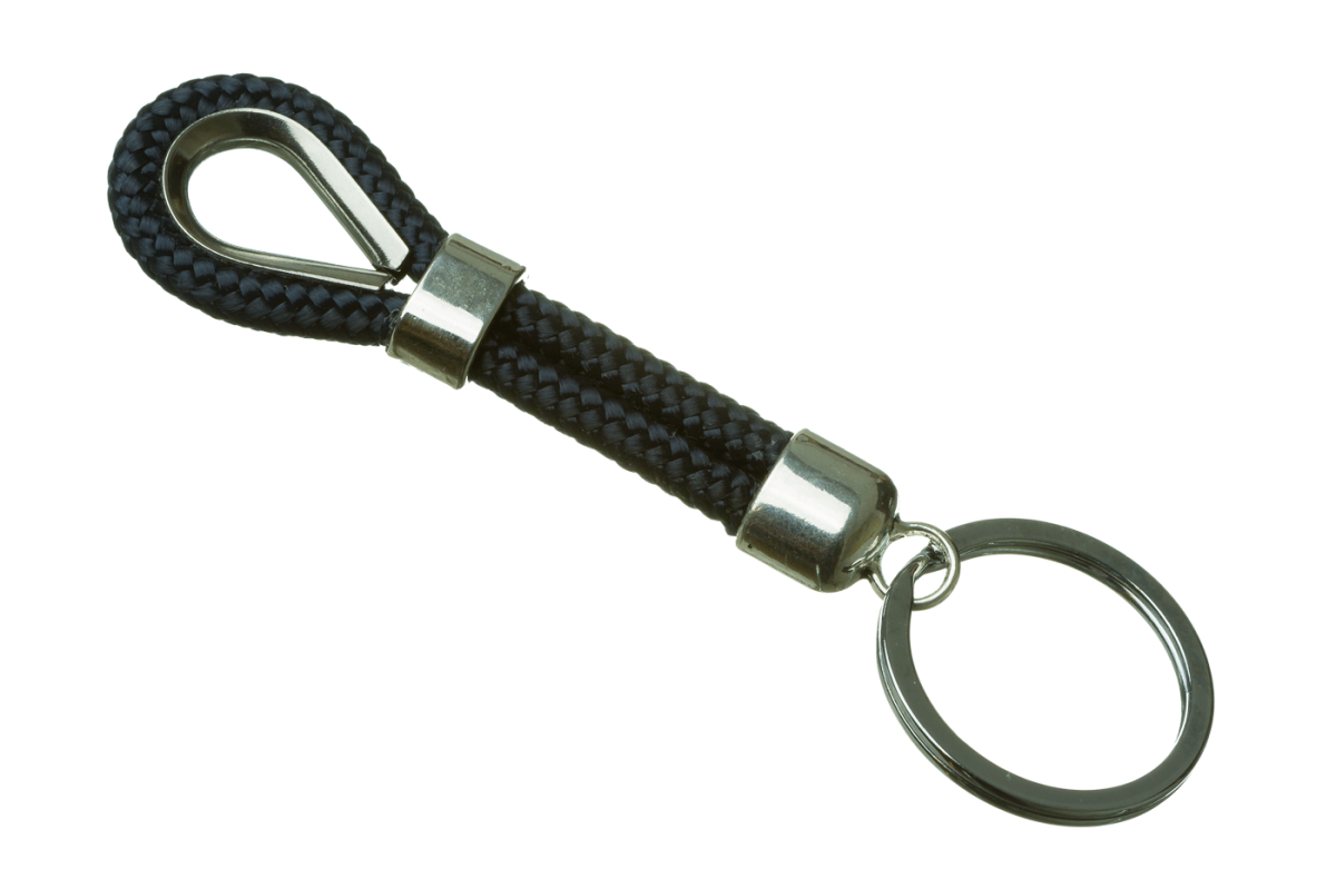 Llavero marinero azul marino hecho con driza y guardacabos de acero inoxidable.