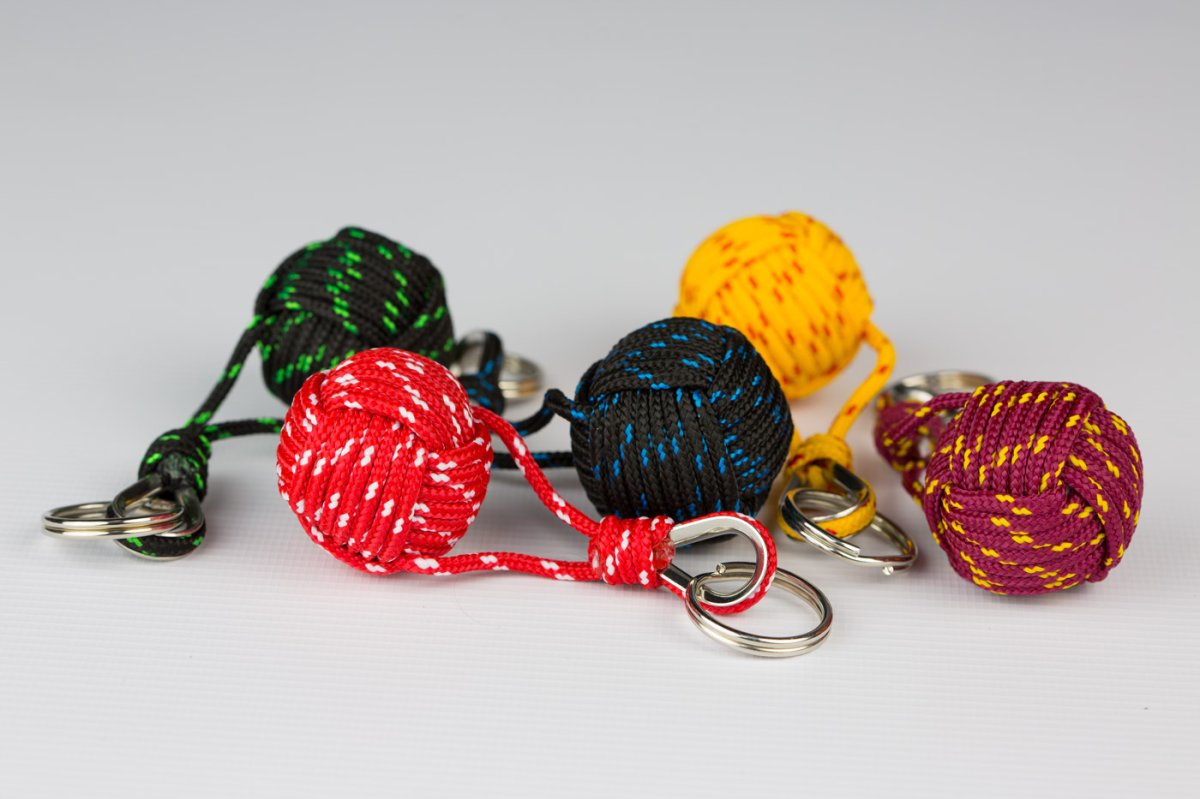 Llavero puño de mono en diferentes colores fabricado con vistosos cabos tipo driza con guardacabos.