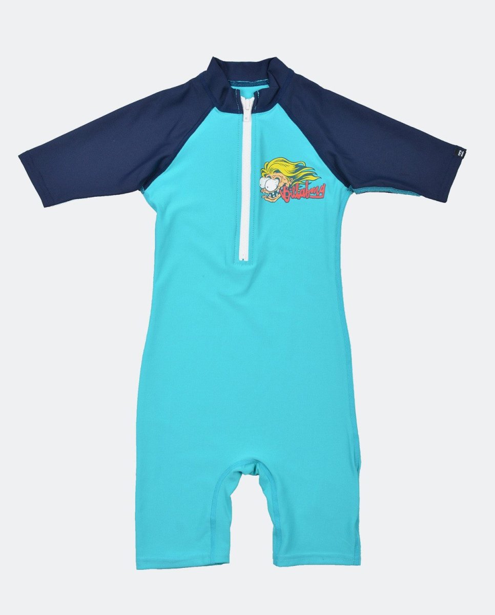 Lycra Billabong Shreddy Toddler niño, para proteger a tu hijo del sol, mono completo, con cierre de cremallera, diseño divertido y alegre. Protección UV50+.