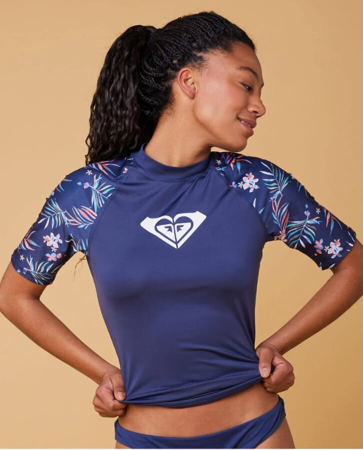 Lycra Roxy Printed Sleeves, camisa térmica 100% poliéster de protección UPF 50+UV, en manga larga, tejido Surflite ligero, cómodo y resistente al cloro, por lo que mantiene su estructura, forma y calidad. La Lycra Roxy Printed Sleeves de estilo tropical es ideal para llevarla fácilmente practicando tu deporte favorito o bajo el sol.