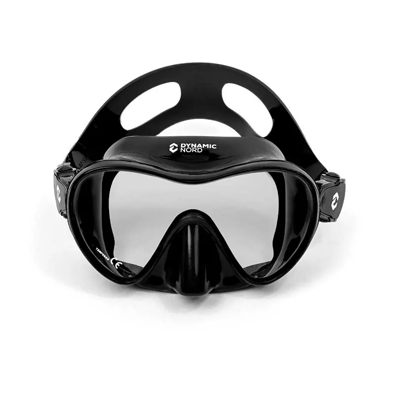 Volumen reducido. Máscara sin marco de un solo cristal. Excelente visión hacia el fondo. Hebilla Tec de dos botones