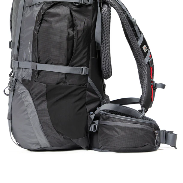 - Funcionalidad Externa: Porta Piolet/bastón, correas de compresión laterales y múltiples bolsillos con cierre (incluyendo bolsillos en el cinturón lumbar).