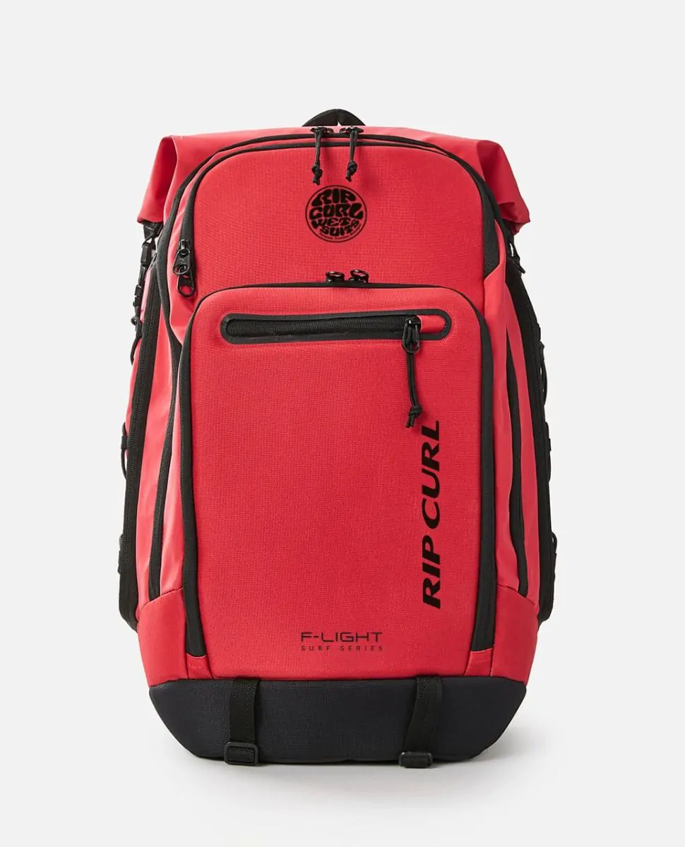 Mochila Rip Curl F-Llight Surf 40 L, confeccionada con materiales duraderos y resistentes al agua, capacidad de 40L, cuenta con un compartimento mojado/seco ideal para guardar material húmedo después de una sesión de surf, tres bolsillos centrales y uno frontal de menor tamaño, asa acolchadas con sujeción de seguridad al pecho, dos enganches exteriores, bolsillo lateral porta objetos.