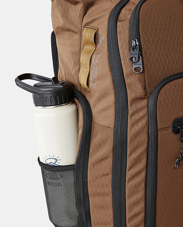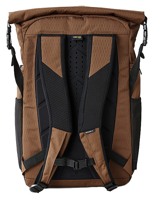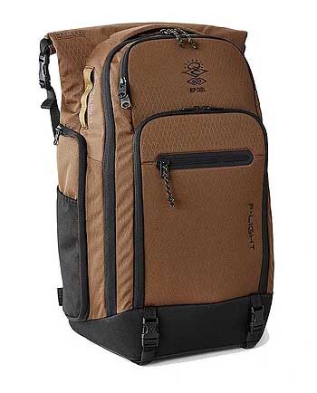 Mochila Rip Curl F-Light Surf Searchers 40 L, fabricado con material ECO CORDURA® RECYCLED POLY, medidas aproximadas 53 x 34 x 23 cm, panel frontal de material EVA moldeado, bolsillo principal con cremallera bidireccional, compartimento interior con organizador para PC con forro polar, gran bolsillo enrollable impermeable para objetos mojados, dos bolsillos delanteros pequeños con forro, bolsillo frontal impermeable (organizador y mosquetón para llaves en el interior), bolsillos laterales con cremallera y 2 compartimentos laterales elásticos de libre acceso, correas de compresión delanteras, panel trasero de EVA transpirable y acolchado, asas ajustables y ergonómicas con refuerzo en pecho.