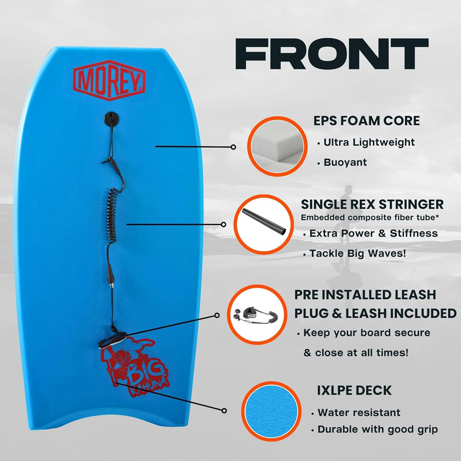 Les presentamos al Morey Boogie Big Kahuna. Diseñado para quienes se destacan, esta tabla bestial no es una tabla cualquiera. Con una imponente plantilla de 44″, te espera una flotabilidad inigualable en olas, una estabilidad suprema y el control mejorado que te brinda la amplia plataforma que tienes debajo. Más espacio para maniobrar, más delicadeza para mostrar. Si alguna vez has sentido que los body boards más pequeños no te convencen, ahora tienes al Big Kahuna.