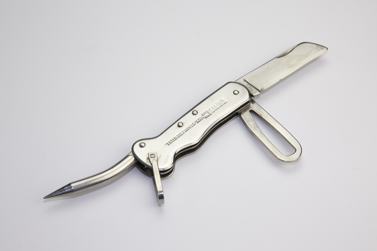 Navaja marinera de acero inoxidable con punzón deshace nudos, abre grilletes y destornillador.