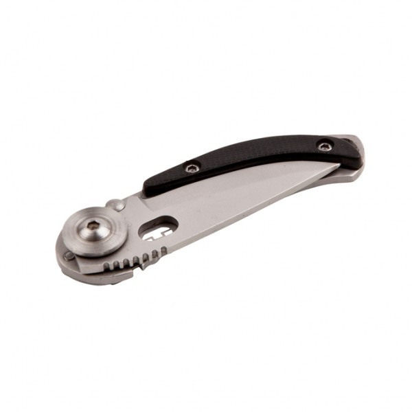 Una navaja pequeña, fuerte, minimalista y brillante. Un diseño inteligene e inusual con sistema de marco abierto permite abrir y cerrar la hoja de la navaja de forma muy suave con una sola mano. Es un placer usar esta navaja con una estructura tan delgada. Hoja de 4 cms realizada en acero inoxidable grado 422 y cuerpo con detalles en aluminio anonizado. Medidas: L63xW24xD6.5 mm (cerrada)