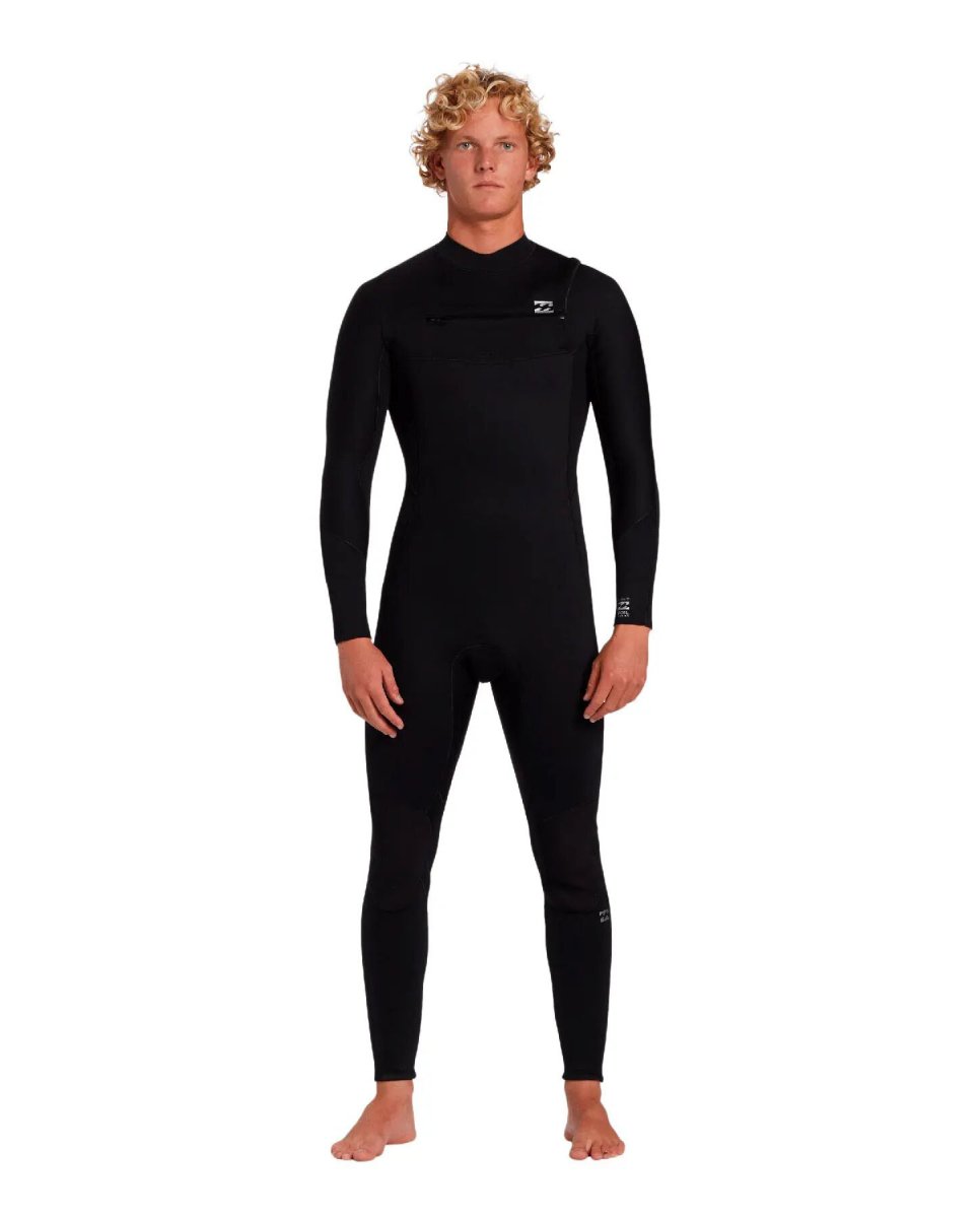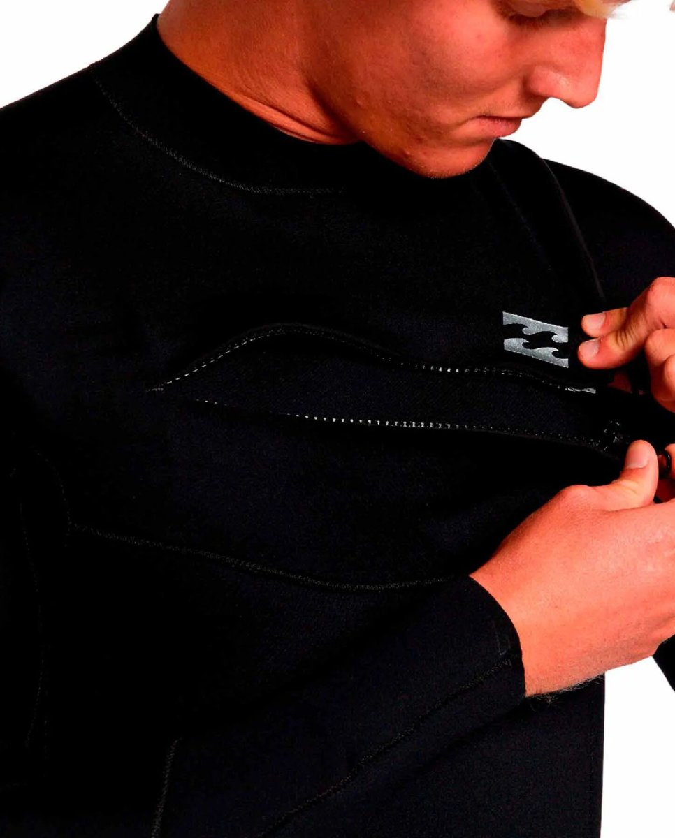 Neopreno Billabong Foil 4/3mm, 80% neopreno 20% nailon con tejido Superflex 250, tejido interior elástico de silicona para una mayor comodidad y retención térmica, puntadas planas, pegadas y cosidas para mayor comodidad, cremallera con doble cierre sistema de seguridad en el pecho, cuello elevado con protección para evitar irritaciones, de diseño ajustado y manga larga.
