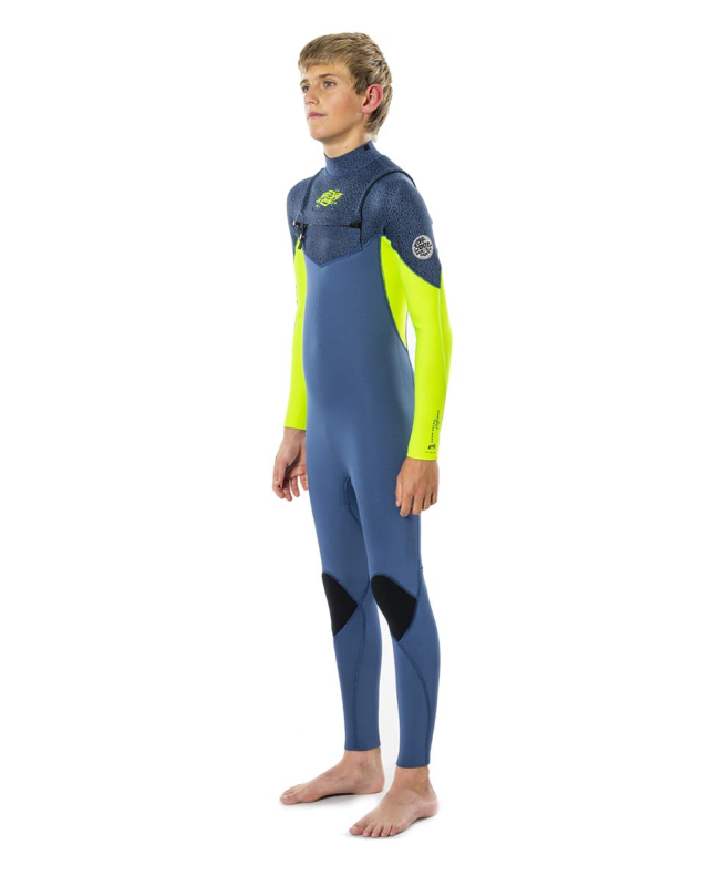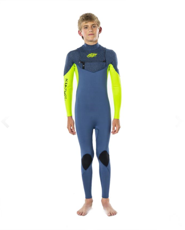 Neopreno Rip Curl Dawn Patrol 4/3 Junior (varios colores), fabricado en neopreno E5 superelástico y Thermo Lining E4 que aporta elasticidad y calidez, pegado y sellado con costuras invisibles en los puntos de mayor tensión para incrementar su durabilidad, cremallera en el pecho con doble cierre de seguridad, cómodo, practico este es tu traje si te gustan las largas sesiones de surf en invierno.