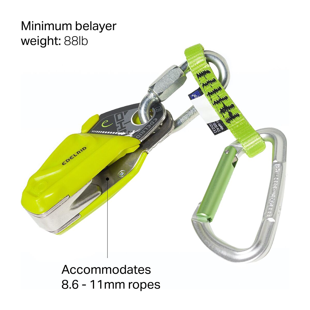 – Compatible con la mayoría de las cuerdas y todos los dispositivos de aseguramiento.