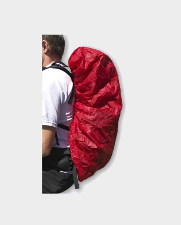 La opción más común y económica para proteger tu equipo de la lluvia es usar un cubremochillas impermeable. La protege 100% y lo única cosa importante que tienes que tener en cuenta es que tenga el tamaño adecuado para adaptarse a la capacidad máxima de tu mochila.