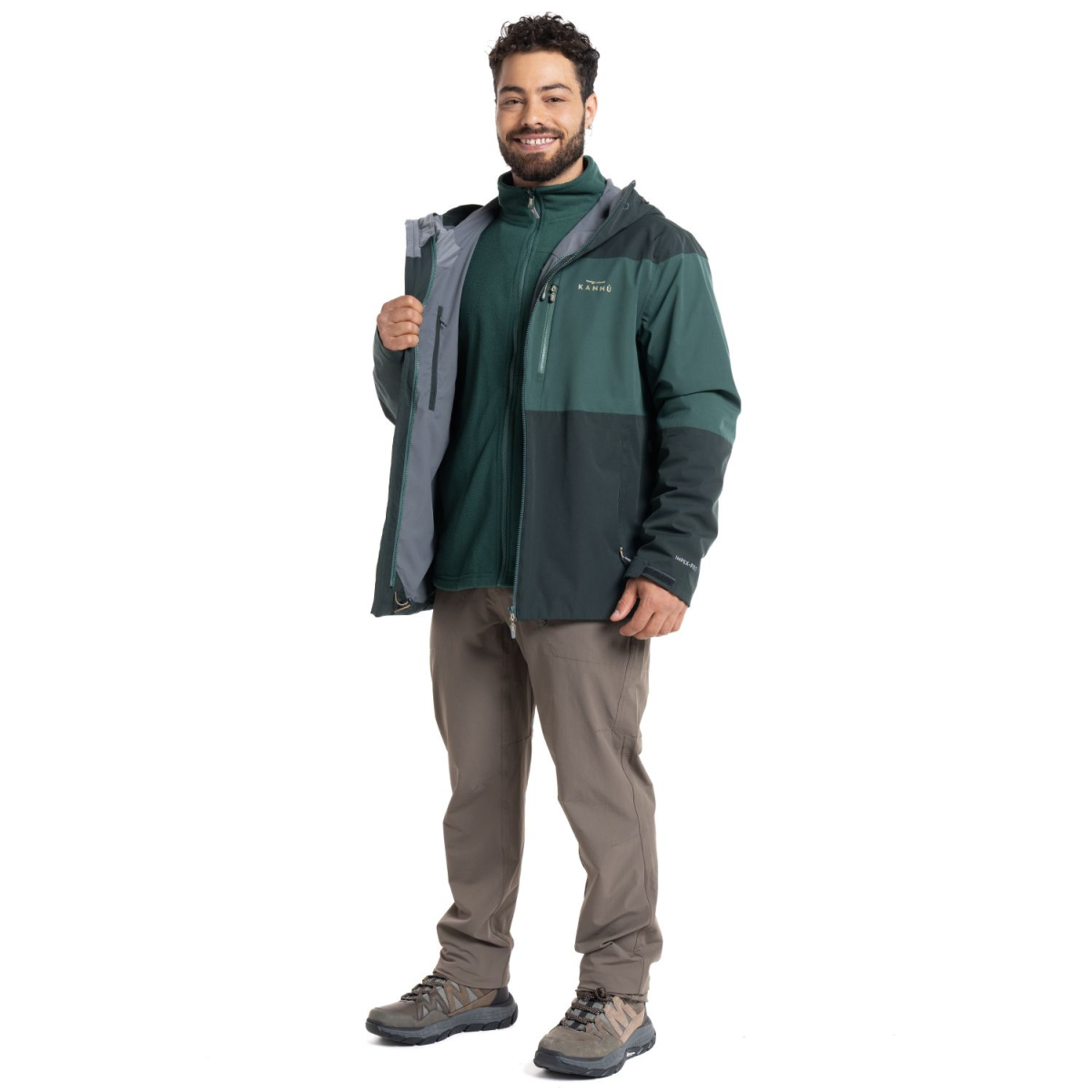La parka Baker 3 en 1 es una prenda de vestir versátil y resistente. Está fabricada con una membrana Impex Pro 10.000 x 10.000 que garantiza una protección impermeable y transpirable. Lleva un polar interno que puedes usar en ocasiones casuales. Las costuras están termoselladas para prevenir la entrada de agua, cuenta con un bolsillo impermeable para guardar tus pertenencias de manera segura. Además, su gorro ajustable te brinda una mayor comodidad y protección contra el frío y la lluvia.