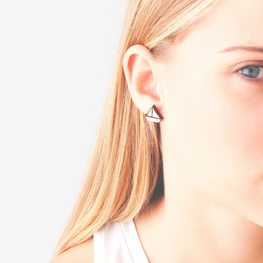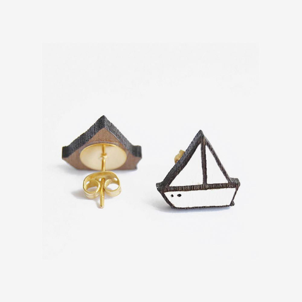 Los pendientes barco madera Little Boat son un diseño de la colección Seaside de Materiarica. Los pendientes están realizado con madera de nogal tallado a láser.
