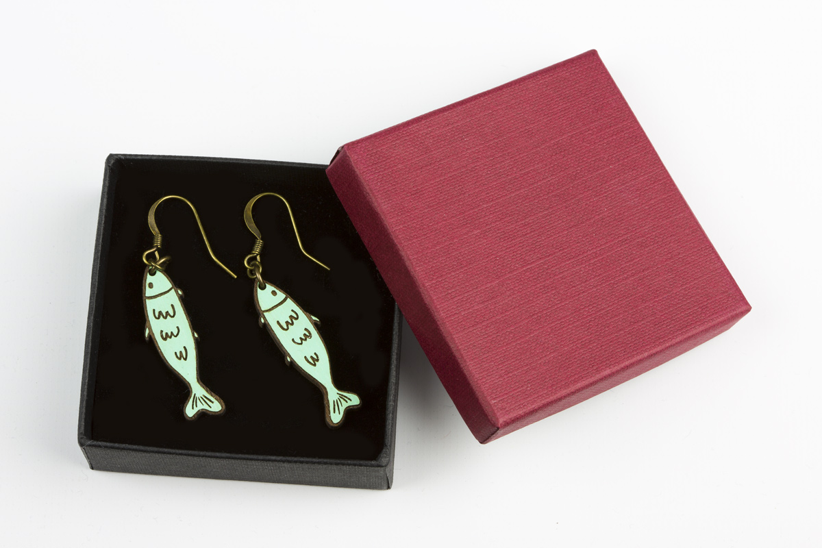 Los pendientes peces madera Sardine son un diseño de la colección Seaside de Materiarica. Los peces están realizados con madera de nogal tallado a láser.