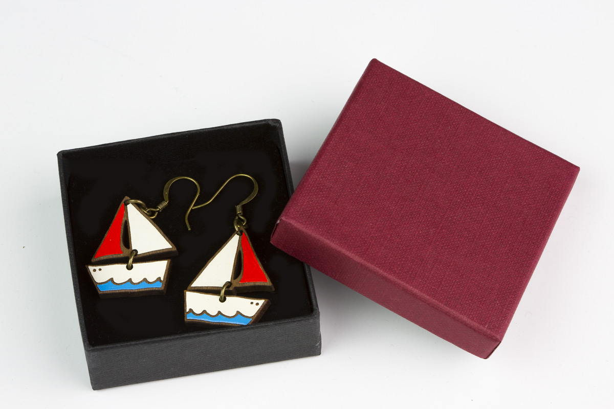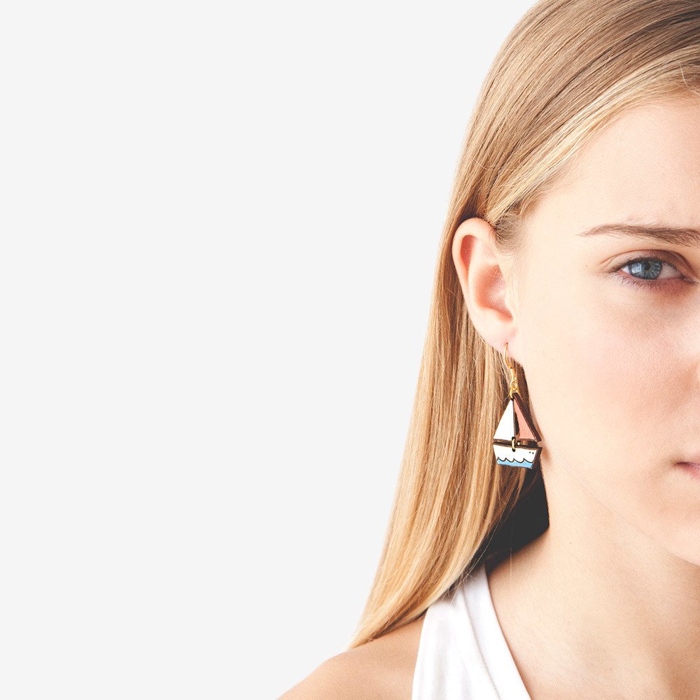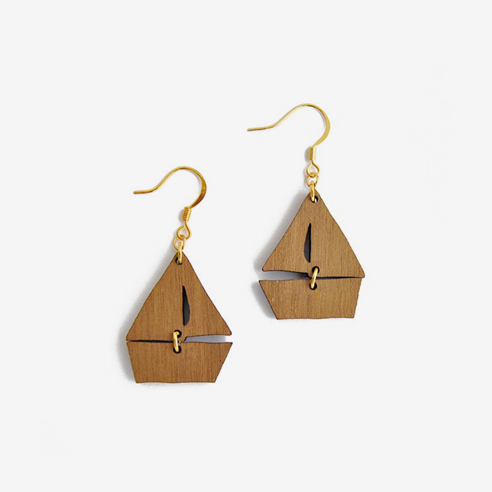 Los pendientes velero madera Dreamy Boat son un diseño de la colección Seaside de Materiarica. Los pendientes están realizados con madera de nogal tallado a láser.