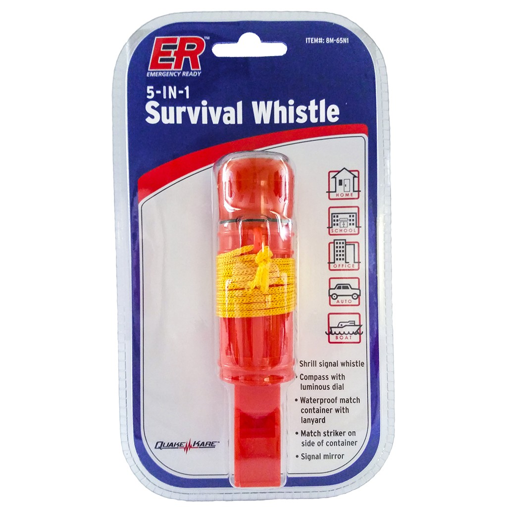 Este pito de uso múltiple se puede utilizar tanto en una situación de supervivencia como en actividades recreativas al aire libre. Esta es una gran herramienta para agregar a sus suministros de emergencia y su equipo de camping. El pito incluye cinco herramientas esenciales en una: Silbido de alto volumen en caso de emergencia, brújula fosforescente que ilumina en la oscuridad, contenedor a prueba de agua para fósforos, superficie lateral para encendido de fósforos y espejo para emitir señales en caso de emergencia.