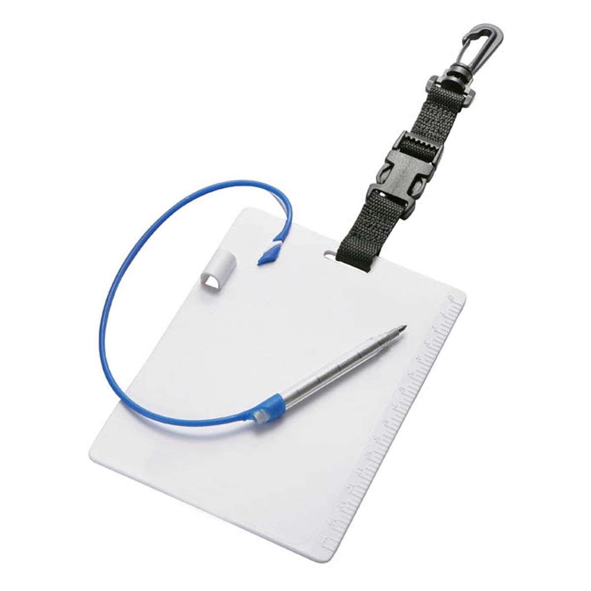 Tablilla plástica con lápiz multipuntas. Enganche con hebilla Fastex.