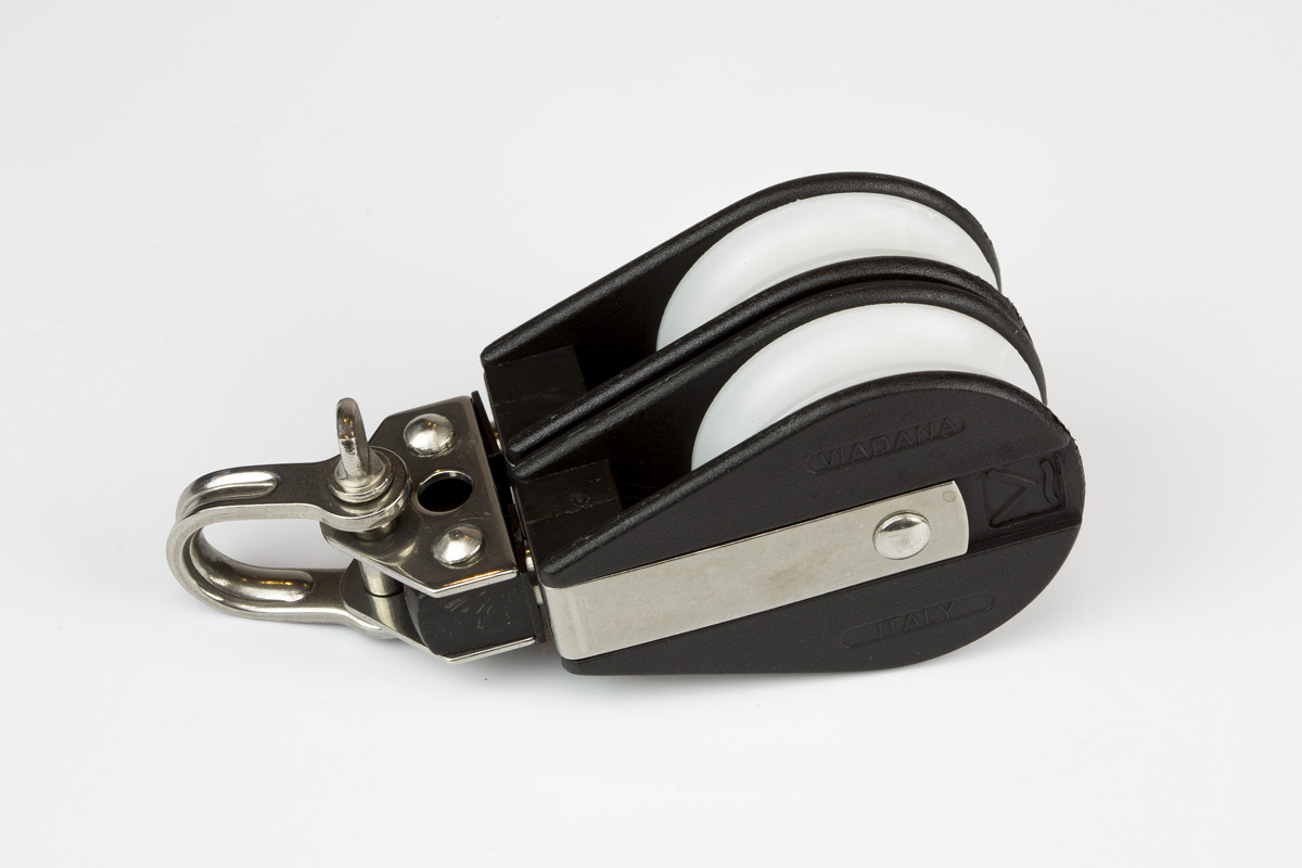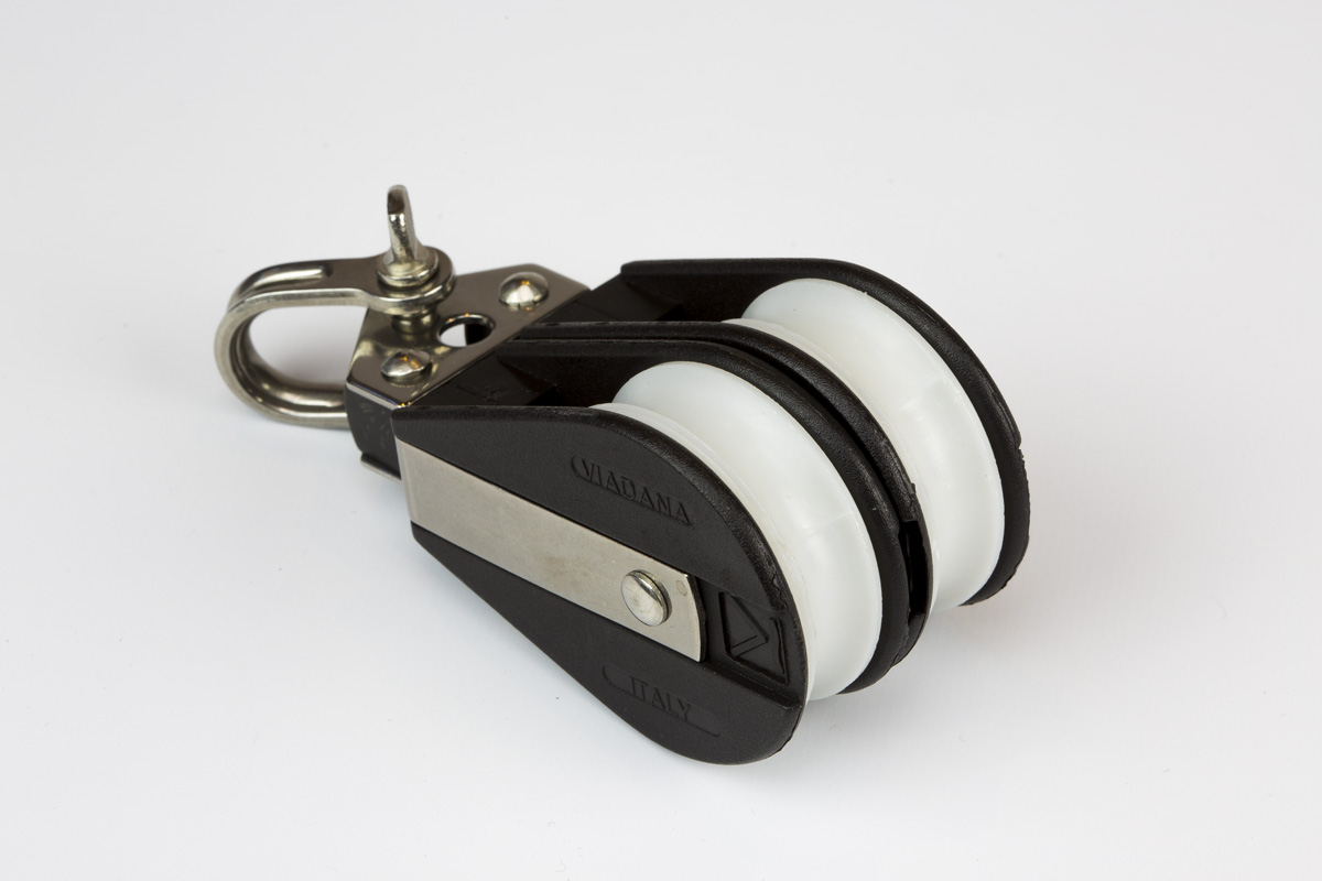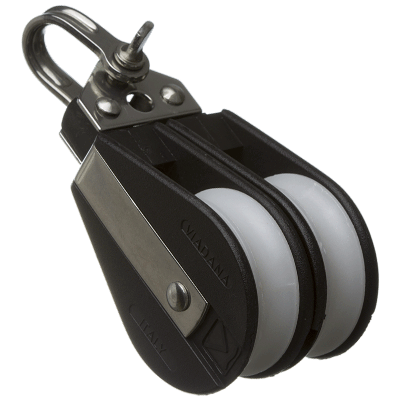 Polea doble Viadana fabricada en nylon y acero inoxidable para cabo de hasta 10 mm.