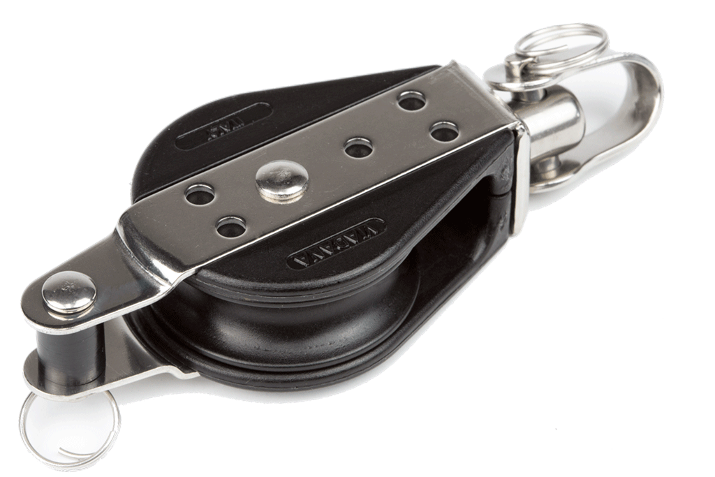 Polea giratoria con arraigo de 38 mm para cabos máximo de 10 mm