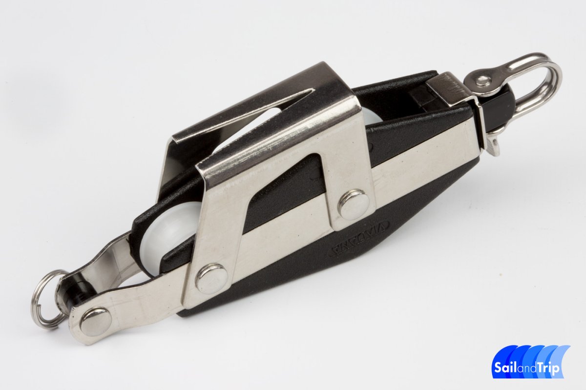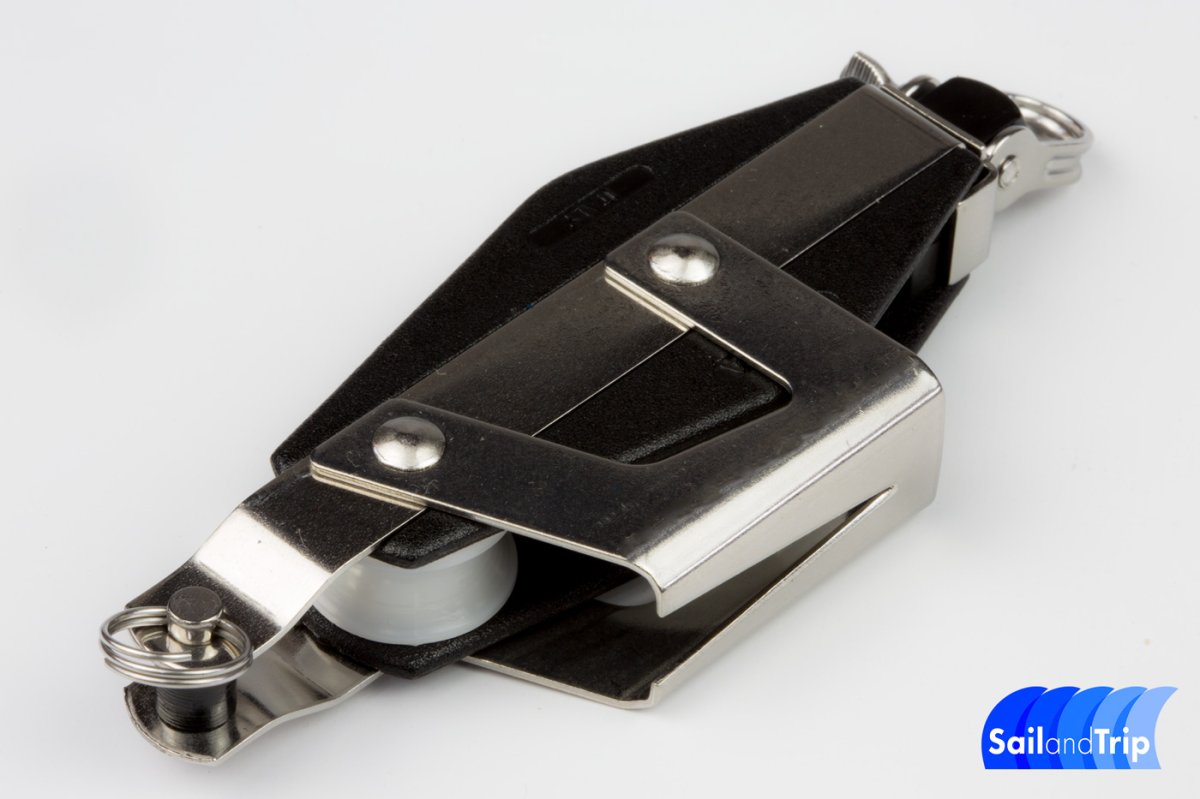 Polea violín con mordaza y arraigo de 34 mm para cabos de hasta 8 mm
