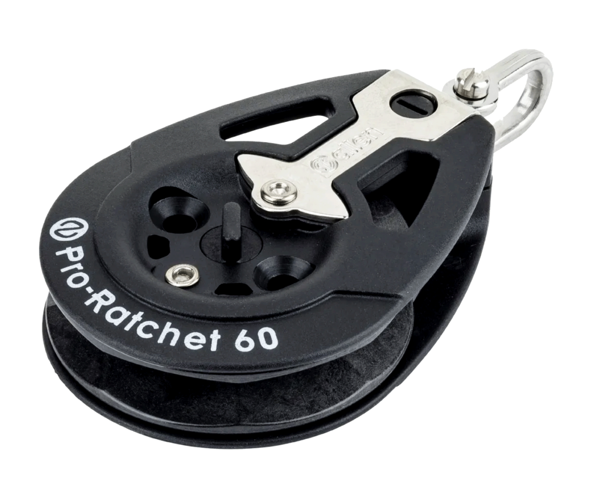 El Pro-Ratchet 60 cuenta con una polea de nylon resistente con ocho empuñaduras en V para dar una sujeción extrema en cualquier cabo.