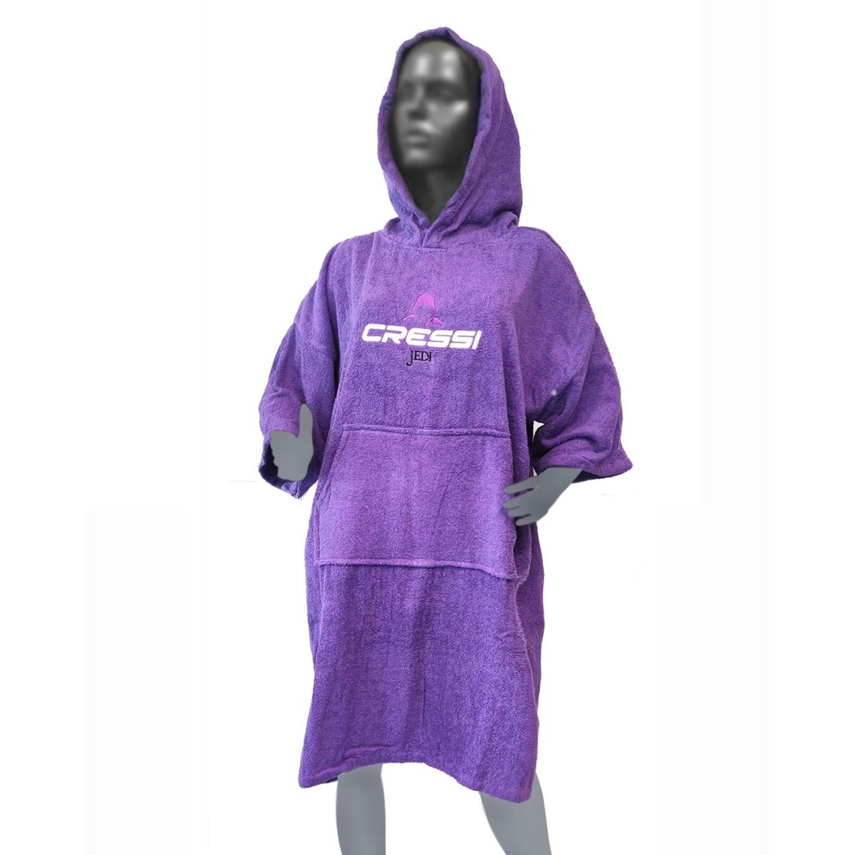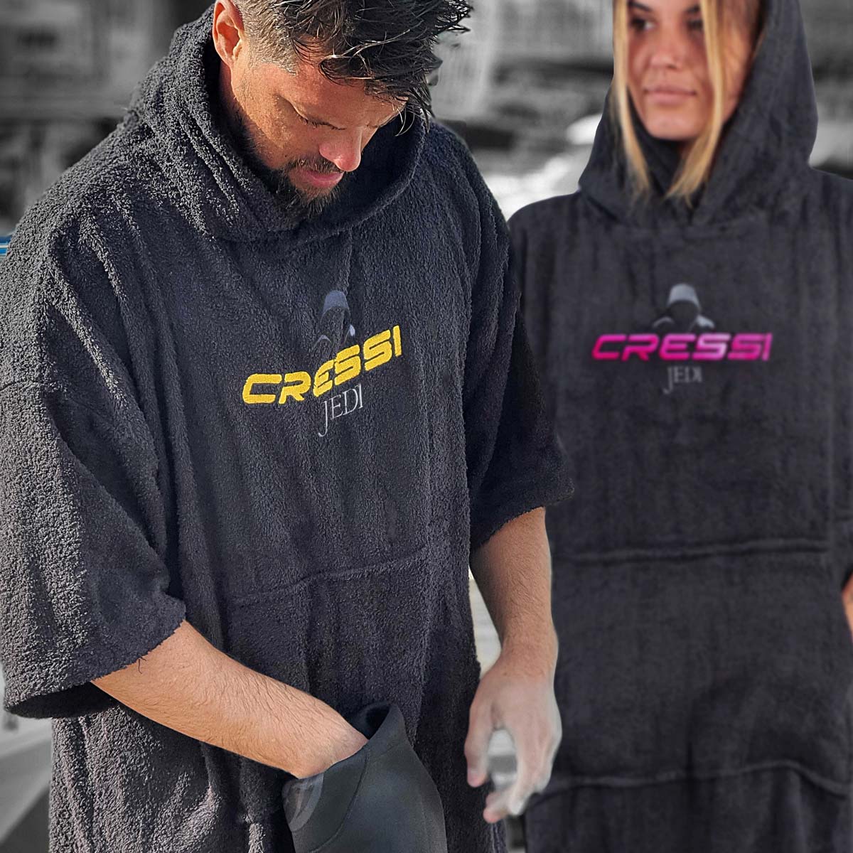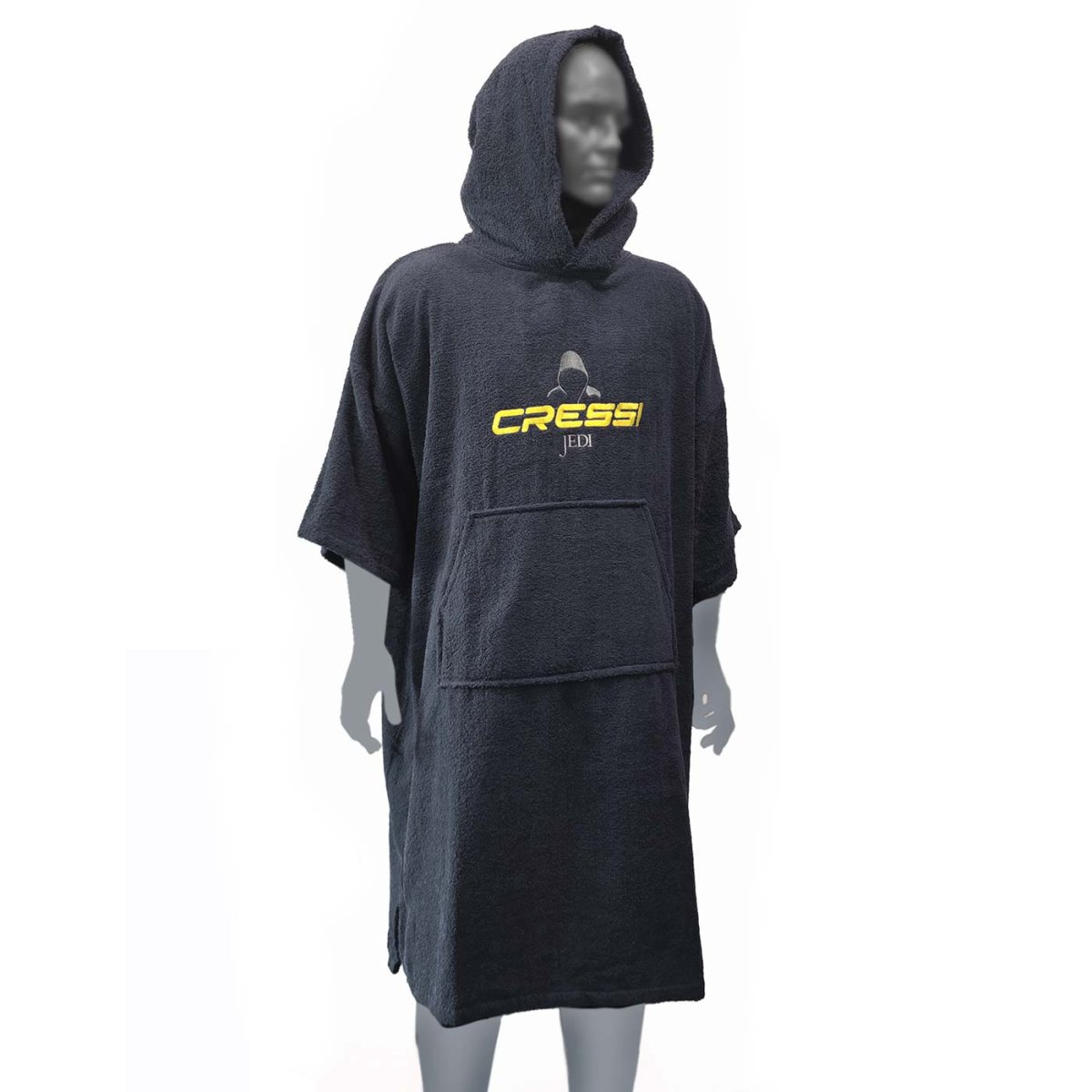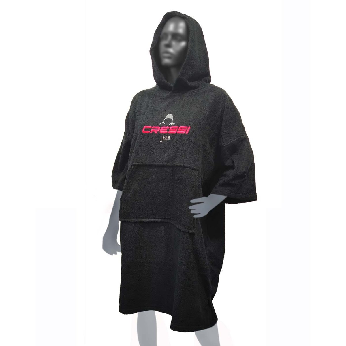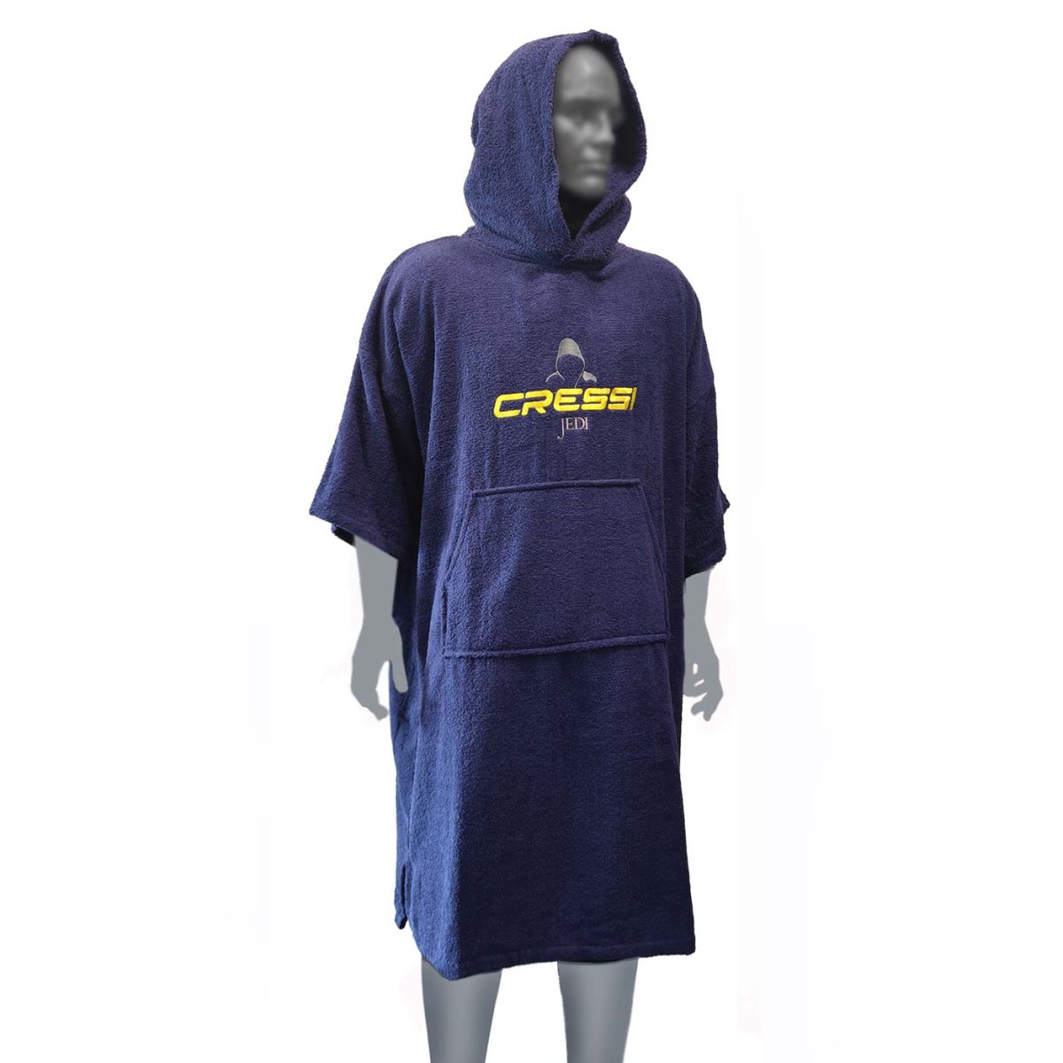 El poncho es probablemente el mejor sistema para cambiarse antes y después de la actividad subacuática, especialmente en días fríos. Retiene el calor, es amplio, permite los movimientos sin problemas y cubre completamente las zonas susceptibles de enfriarse, aparte de secar el cuerpo por su tejido de toalla. JEDI está confeccionado en rizo de algodón peinado de 350 g de máxima calidad.