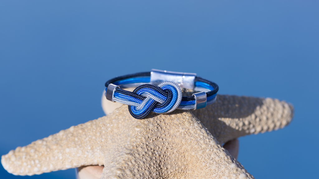 Las pulseras están elaboradas de forma artesanal con cabo marinero y piezas de zamak (cierre con imán). El zamak es una aleación de zinc con magnesio, aluminio y cobre, es hipoalergénico (libre de níquel) y resistente al tiempo y la oxidación.
