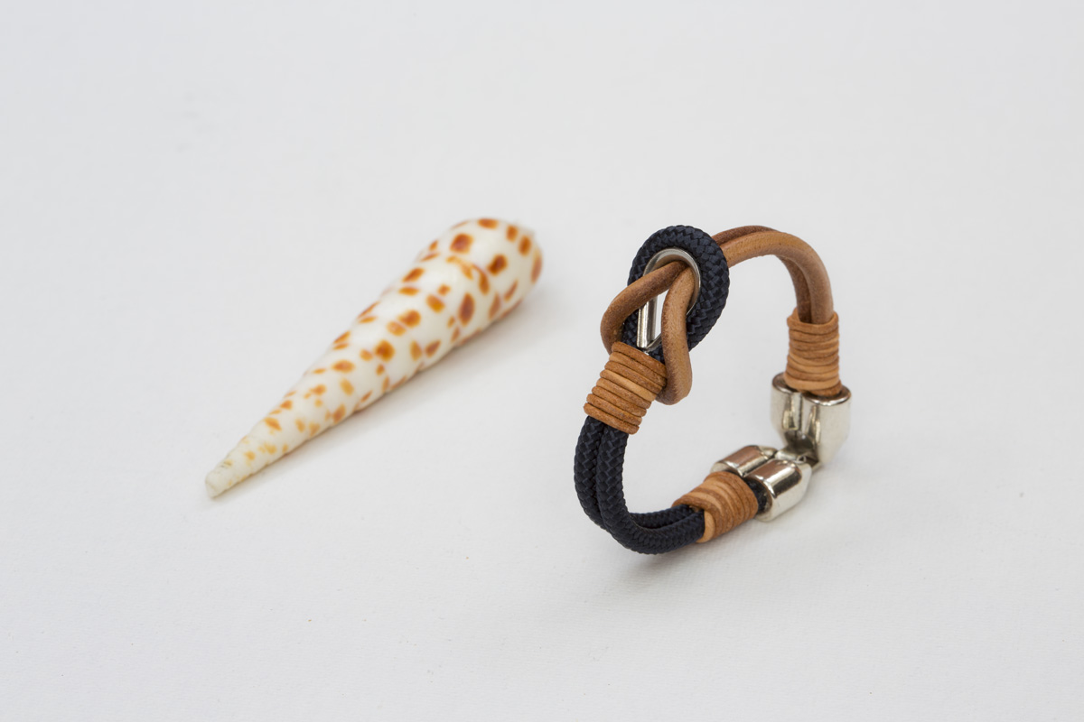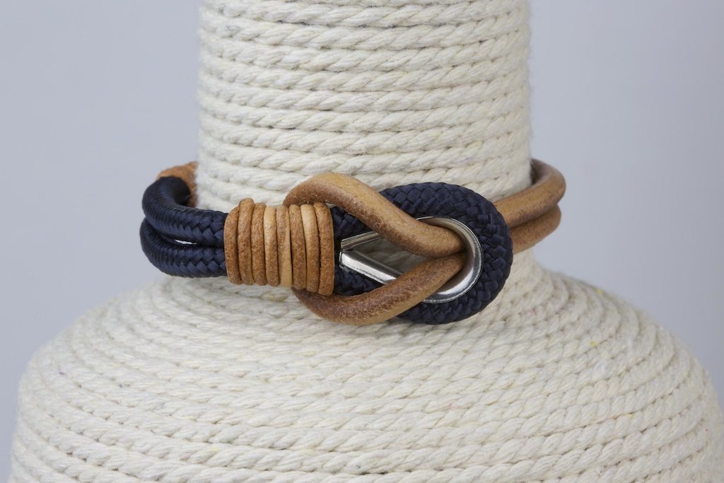 Las pulseras están elaboradas de forma artesanal con guardacabos de acero inoxidable, cabo marinero, cuero y cierre de zamak. Este material es una aleación de zinc con magnesio, aluminio y cobre, es hipoalergénico (libre de níquel) y resistente al tiempo y la oxidación.