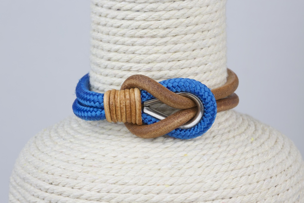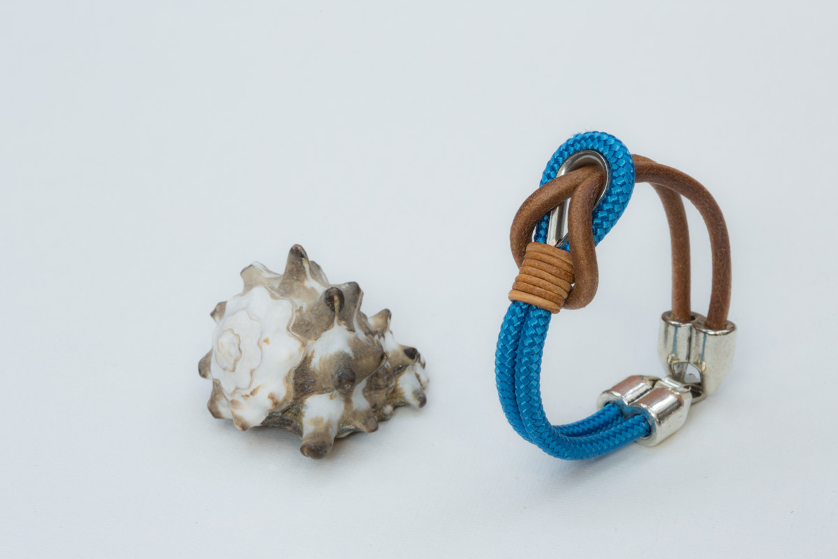 Las pulseras están elaboradas de forma artesanal con guardacabos de acero inoxidable, cabo marinero, cuero y cierre de zamak. Este material es una aleación de zinc con magnesio, aluminio y cobre, es hipoalergénico (libre de níquel) y resistente al tiempo y la oxidación.