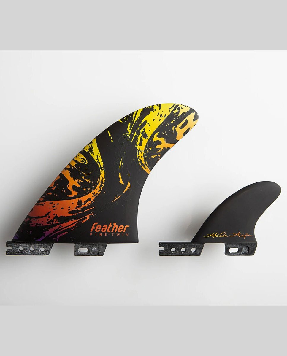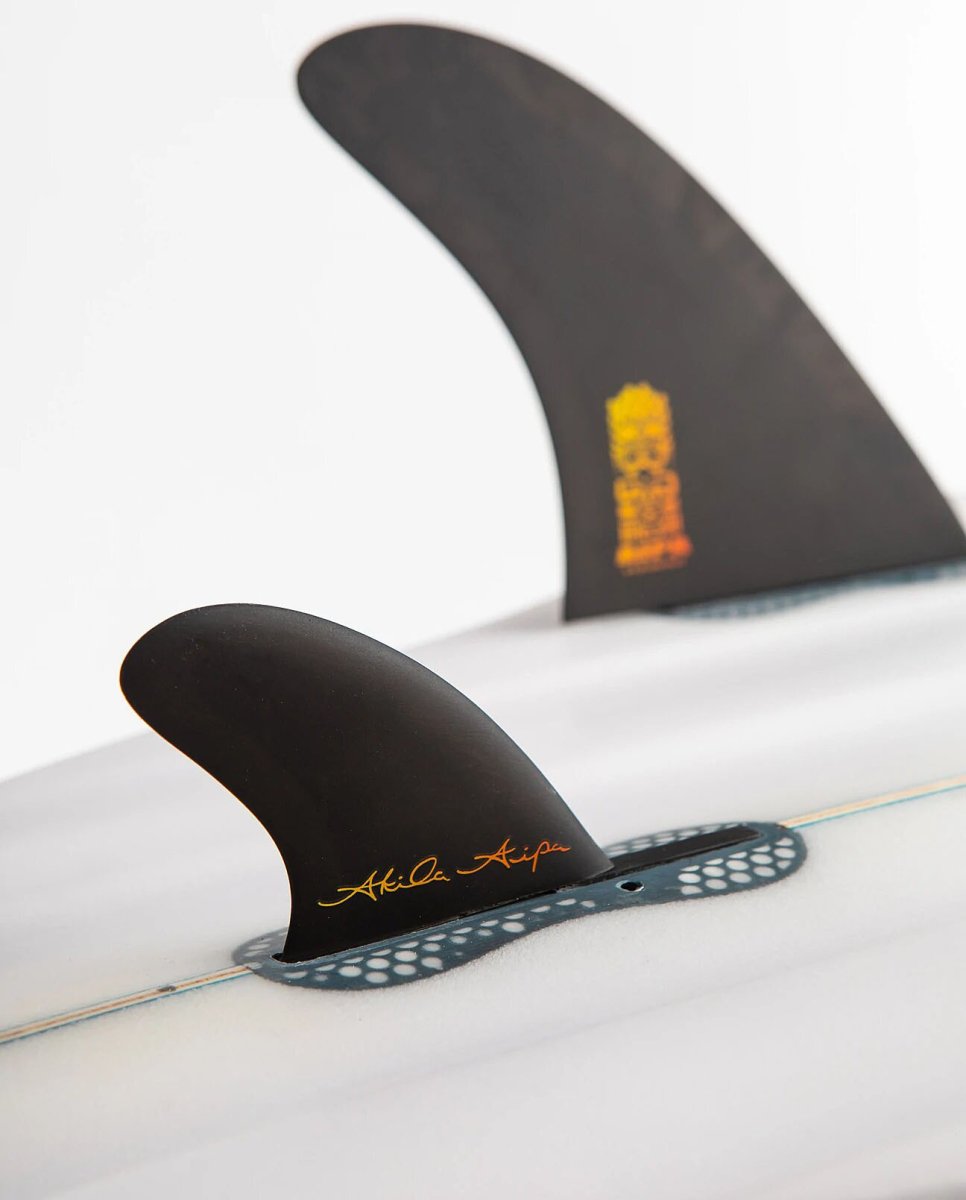 Quillas Feather Fins Akila Aipa Stone 2+1, sistema compatible FCSII, fabricadas con materiales de alta calidad y con sistema 2+1, construcción en hexa core que proporciona ligereza y estabilidad y resina de Epoxi que proporciona alta resistencia y durabilidad, quillas laterales con lámina plana, estabilizador trasero de menor tamaño y mayor ángulo de barrido, la combinación de estas quillas funcionan en sinergia para producir un conjunto dinámico que es increíblemente rápido y receptivo con una gran respuesta al cambiar de dirección. Diseñadas por Akila Aipa.