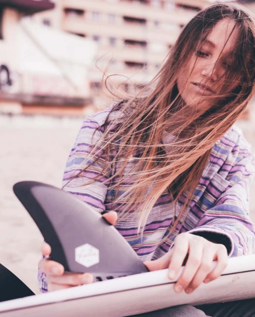 Quillas Feather fins Twin Fin Gris FCSII, 100% de fibra de vidrio, medidas: Altura 120 mm, Base 164 mm (115 mm + 49 mm), Lámina plana, rastrillo 40,5º, estabilidad y control a máxima velocidad, esta twin fin ofrece una sensación de surf de alto rendimiento mientras mantiene el deslizamiento clásico y el ajuste de la quilla.