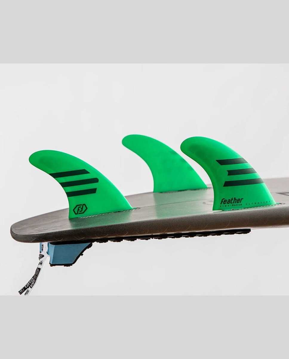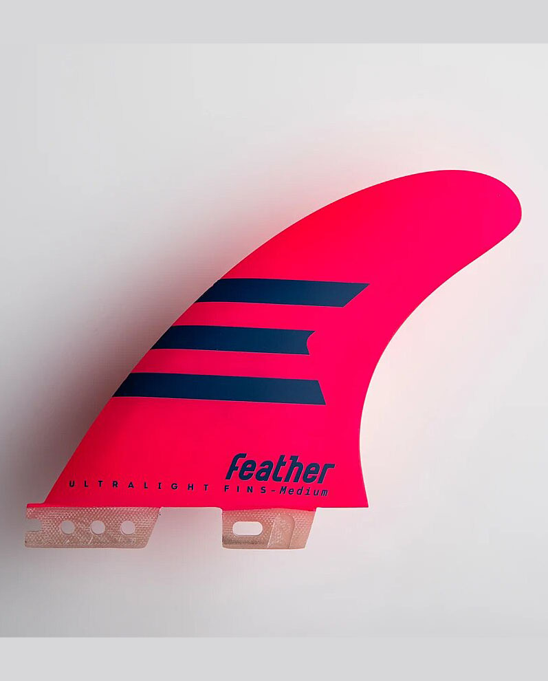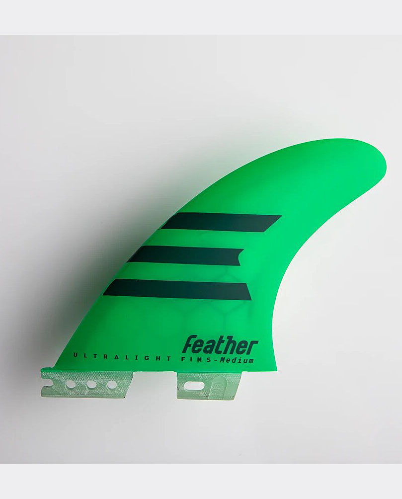Quillas Feather Fins Ultralight HC (varias medidas y colores), sistema FCSII de tres quillas iguales, fabricada en resina de epoxi con proceso RTM (Resin Transfer Moulding) lo que le da más ligera y resistencia, construcción del núcleo hexagonal para brindar sensación de quilla de fibra de vidrio, de platilla clásica, funcional y bien equilibrada perfecta para funcionar bien en todo tipo de condiciones.