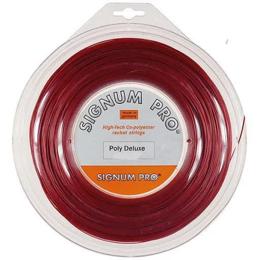 Rollo de Cuerda Signum Pro Poly Deluxe Burdeo es un cordaje de tenis de copoliéster básico que ofrece una mayor durabilidad sobre los cordajes de multifilamentos con un equilibrio óptimo de potencia y control sin sacrificar la comodidad. Esta cuerda de poliéster es ideal para aquellos que cambian de cuerdas más suaves y quieren experimentar un poliéster de calidad por primera vez.