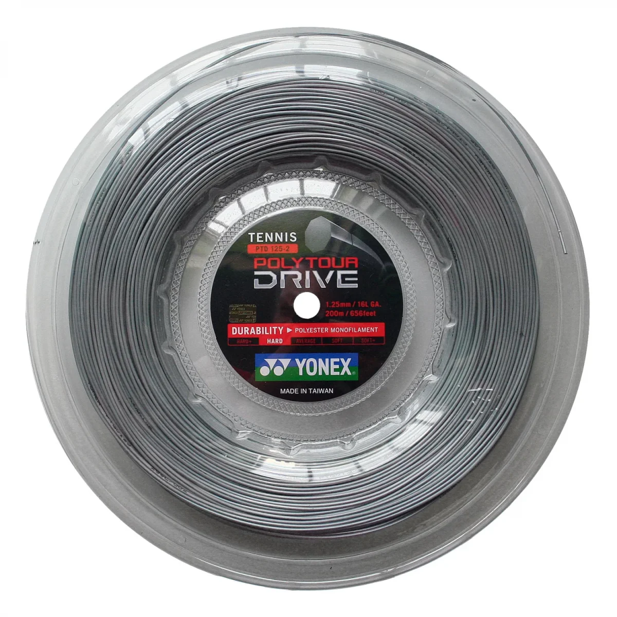Rollo de Cuerda Yonex Poly Tour Drive Gris es un cordaje de poliéster de perfil octogonal que está diseñado para jugadores que desean aprovechar al máximo el spin, maximizando de forma efectiva el agarre de la pelota y los efectos, y a la vez que obtener precisión y control de potencia. Es una cuerda dura con excelente durabilidad.