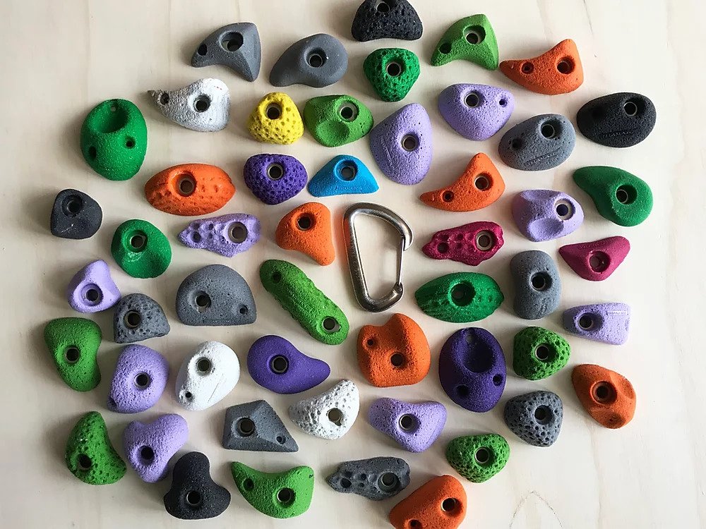 Presas agarres de escalada para superficies de escalada recreativas o deportivas de competencia. Diseños únicos y variados con formas diversas.