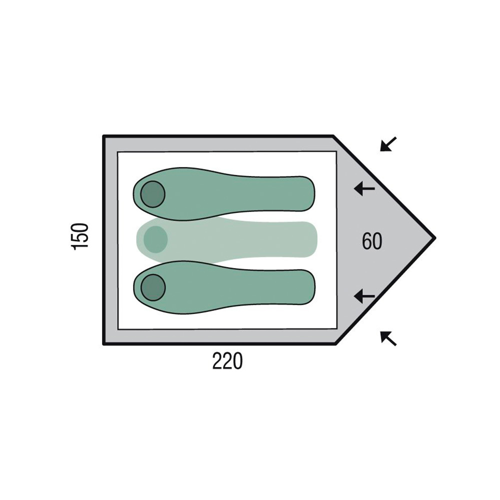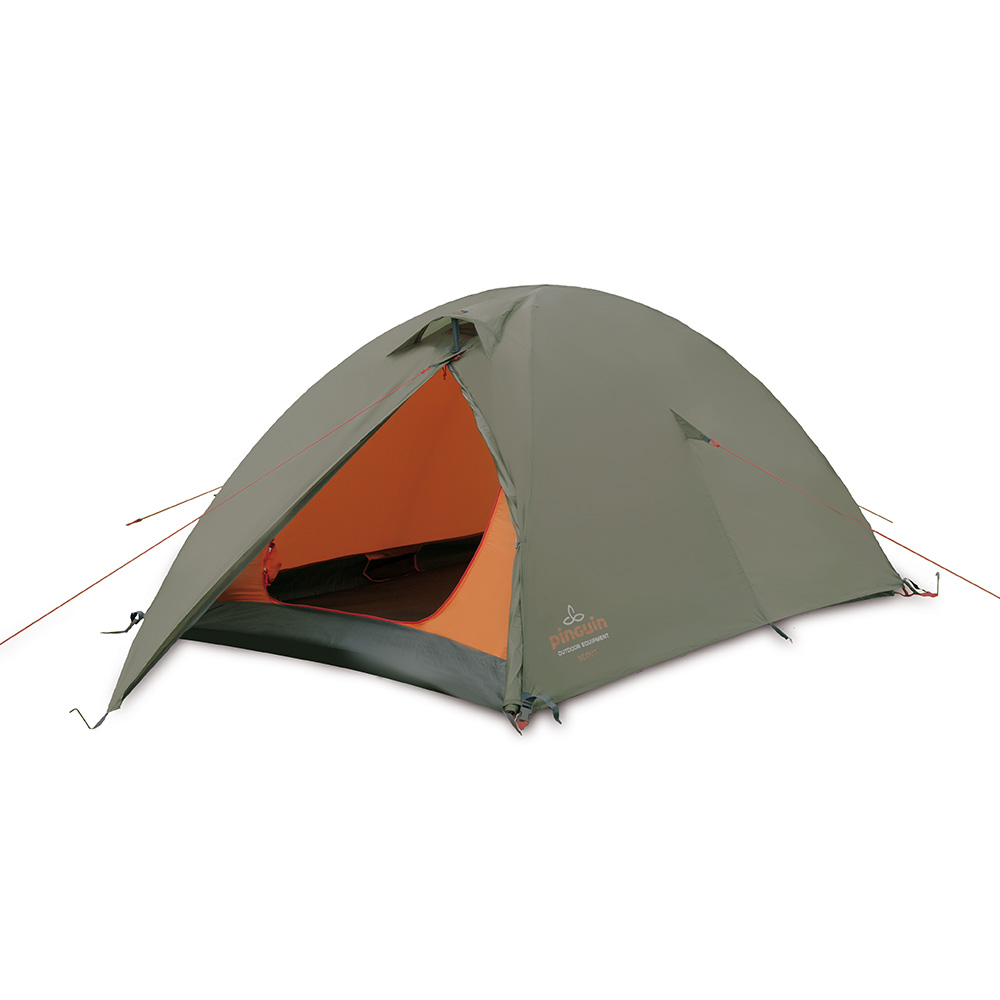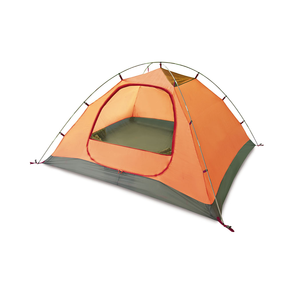 Carpa sencilla de la Serie Outdoor (Carpas diseñadas para usar durante todo el año excepto invierno. Son perfectas para aquellos campistas que desean una alta calidad en terminados, mano de obra y características especiales en su carpa a un precio razonable.). Muy fácil de armar, tipo domo. Posee una amplia entrada que se puede utilizar como vestíbulo para dejar los morrales. Capacidad dos personas.