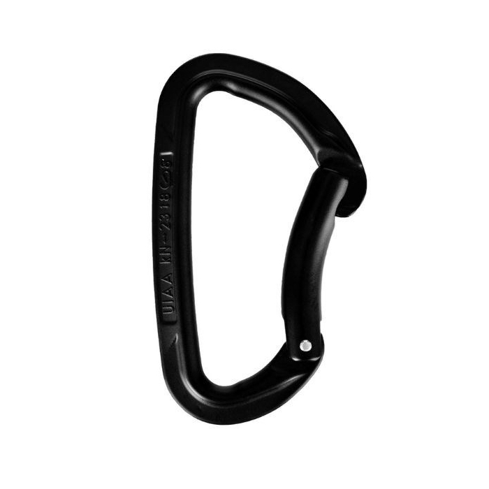 Mosquetón simple curvo, compacto y de fácil manejo con una compuerta curva que permite una facil insercion de la cuerda (mosquetoneada)