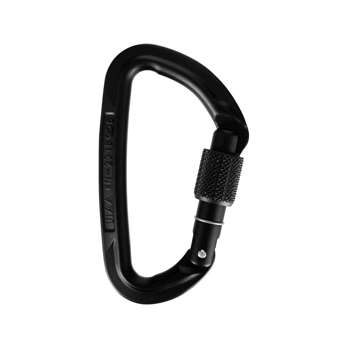 Mosquetón de seguridad compacto y de fácil manejo con una compuerta de rosca y una muy fácil manipulación optimizada.