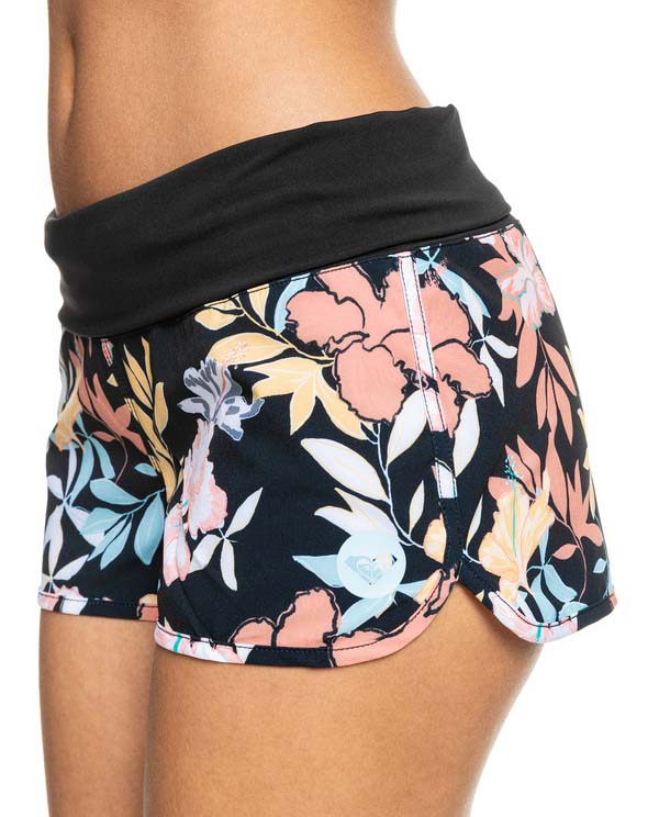 Short Roxy Endless Summer (varios colores), fabricado con tecnología Repreve™ trazable de poliéster reciclado elástico en 4 direcciones, a base de botellas de plástico, 90% Poliéster Reciclado 10% Elastano, cintura elástica con vuelta de algodón de talle bajo y ajustable con cordón, logo con la marca ROXY en lateral.