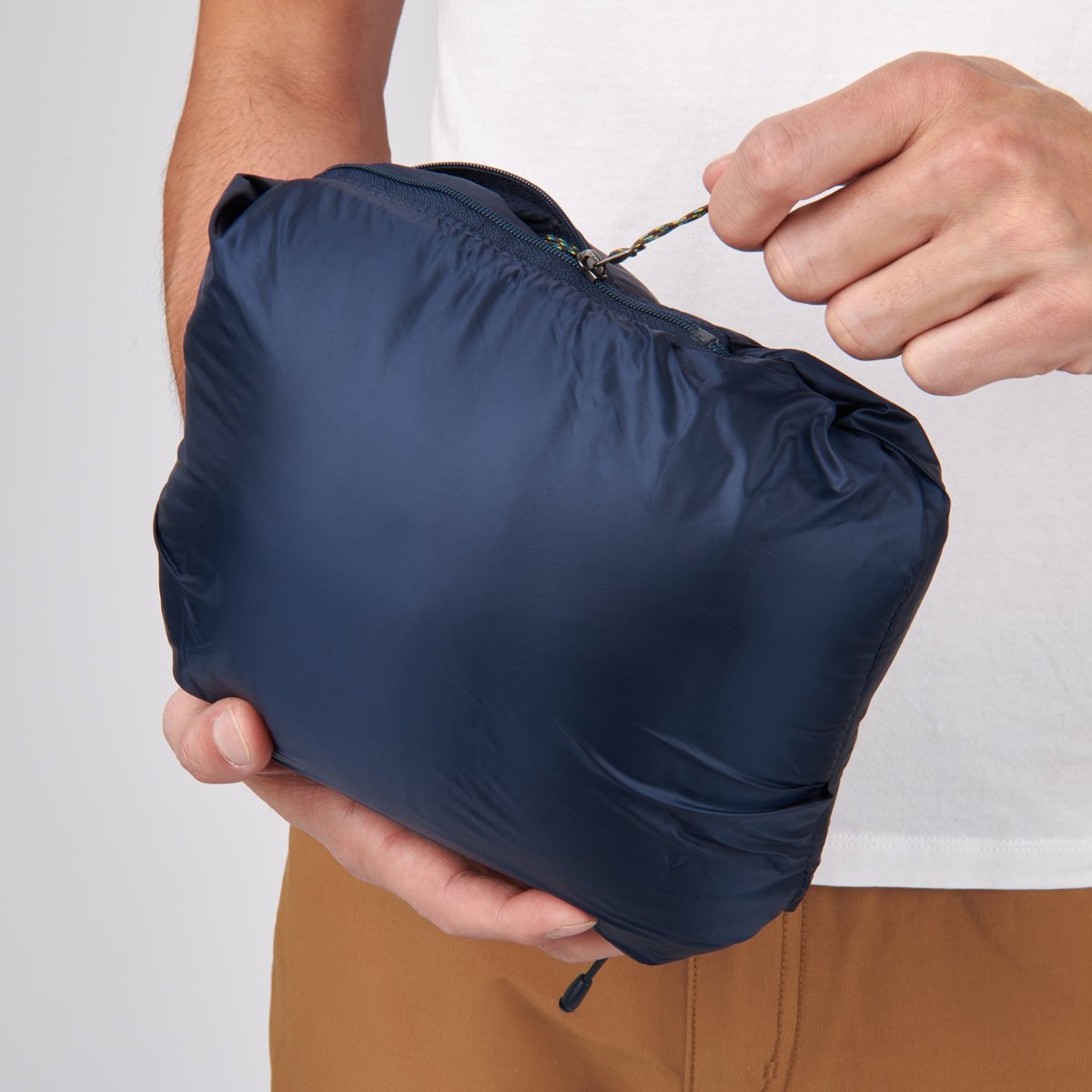 – La chaqueta se guarda en su propio bolsillo para facilitar su almacenamiento y transporte.