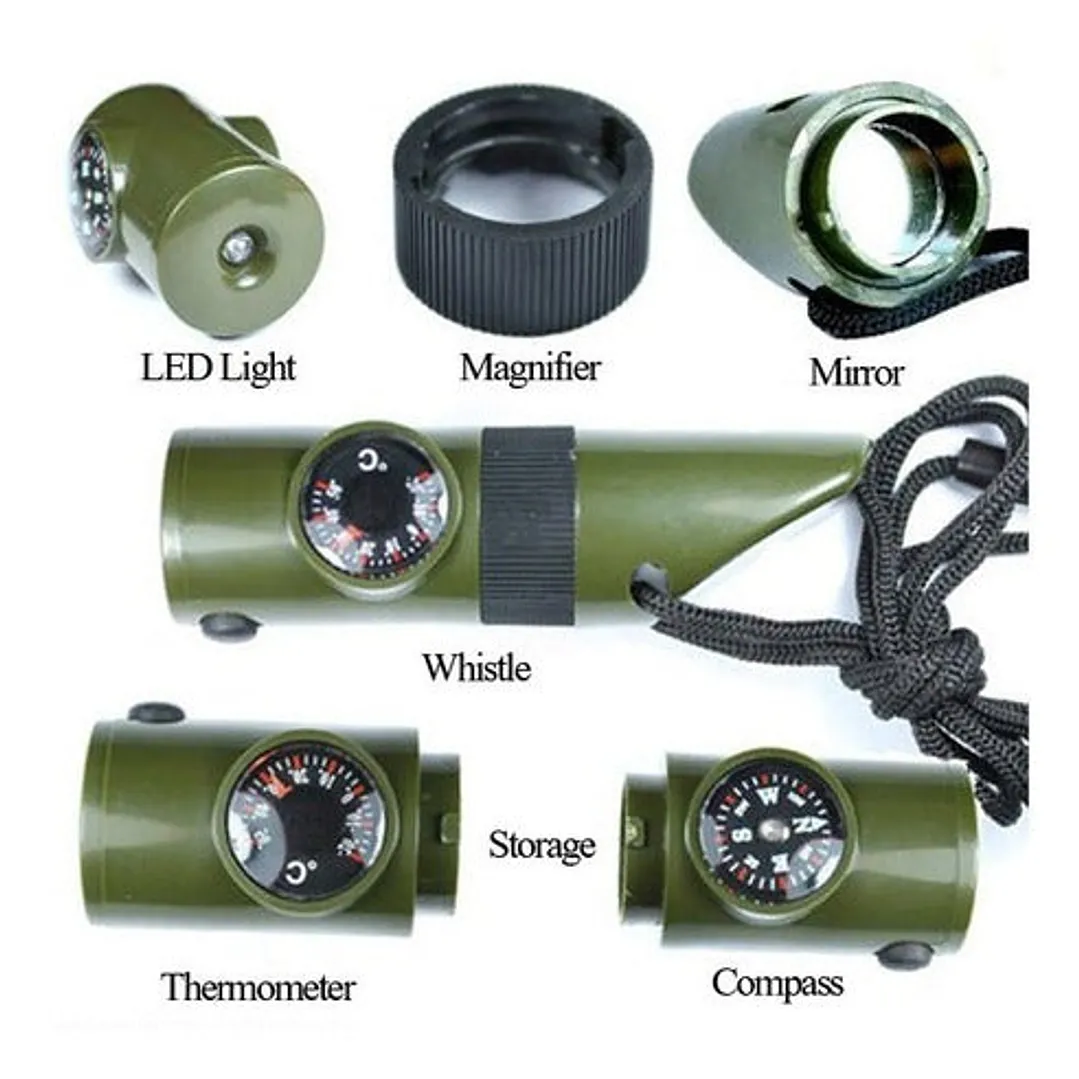 ¡Este silbato de supervivencia es realmente impresionante! Está hecho de materiales resistentes, tiene un tamaño compacto de 9.7 cm de longitud y 2.8 cm de diámetro. Viene en un llamativo color verde militar y tiene varias funciones útiles: