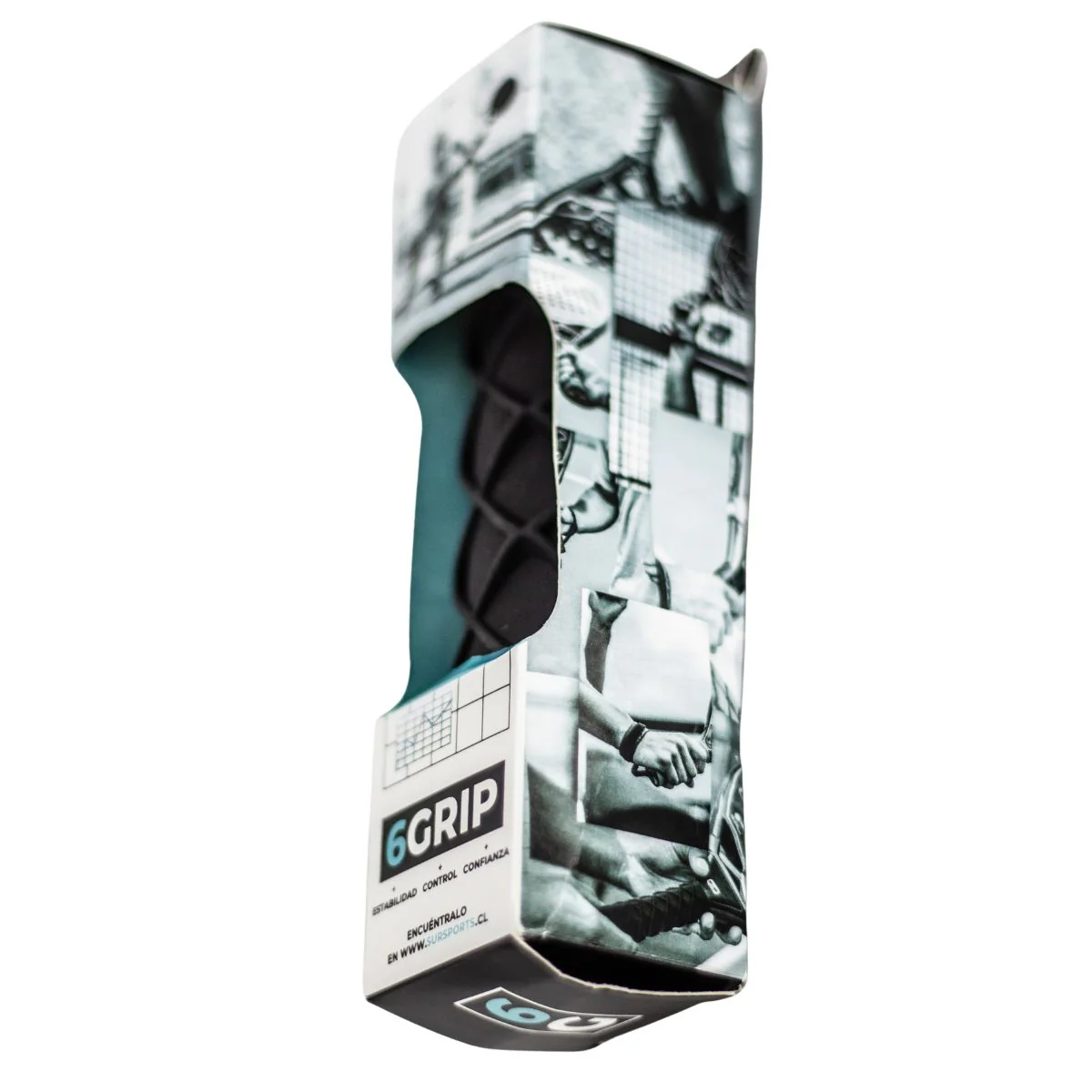 De una sola pieza y de talla única, Six Grip está fabricado de silicona suave y flexible, material de alta durabilidad, para ser colocado por completo sobre el mango de la pala. Su diseño y relieves mejoran la sensación en los dedos, generando adherencia y comodidad que permiten una sujeción de menos esfuerzo.