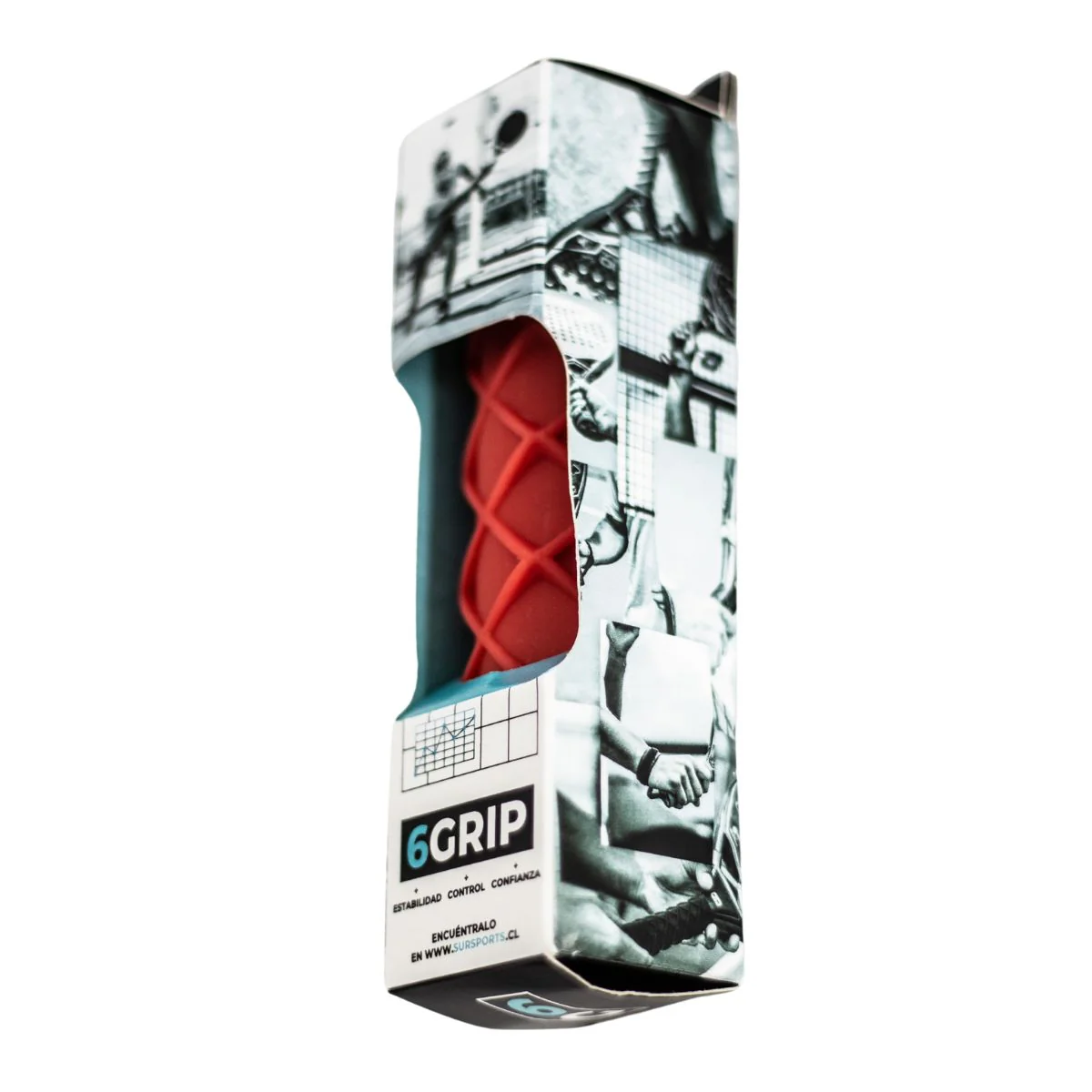 De una sola pieza y de talla única, Six Grip está fabricado de silicona suave y flexible, material de alta durabilidad, para ser colocado por completo sobre el mango de la pala. Su diseño y relieves mejoran la sensación en los dedos, generando adherencia y comodidad que permiten una sujeción de menos esfuerzo.