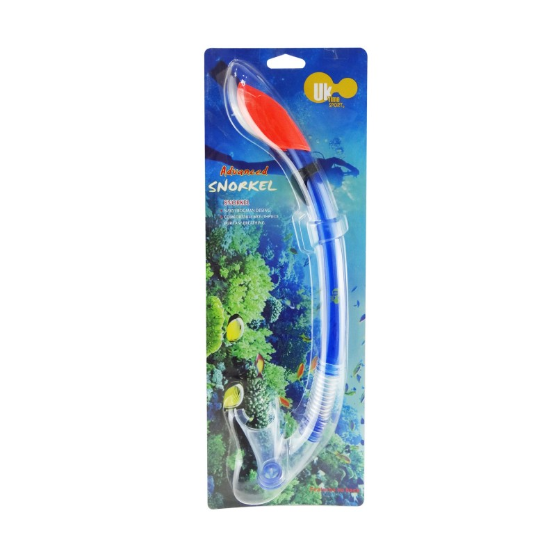Snorkel con sistema Dry Top, diseñado para evitar la entrada de agua y permitir una respiración más cómoda y segura. Cuenta con tubo de PVC resistente y boquilla de silicona suave, que brinda mayor confort y protege los dientes durante su uso prolongado. Incorpora un conector giratorio de POM, que se adapta fácilmente al movimiento del usuario, y una válvula de purga que facilita la expulsión del agua para una respiración más eficiente.